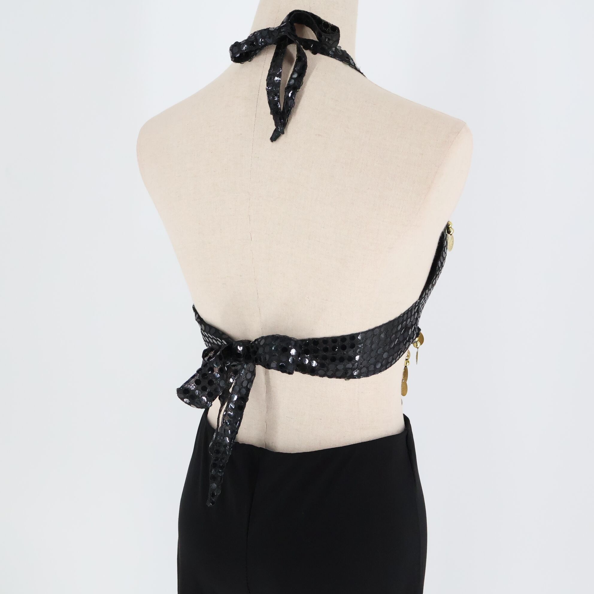 【ベリーダンス用衣装】ブラック×ゴールド レッスン着 上下セット 黒 コイン トップス フレアパンツ セット レース生地 練習 ベリーダンス 上下セット ゴールドコイン フレアパンツ おしゃれ 練習着 スポーツウェア 黒 黒衣装 女性用 ストレッチ