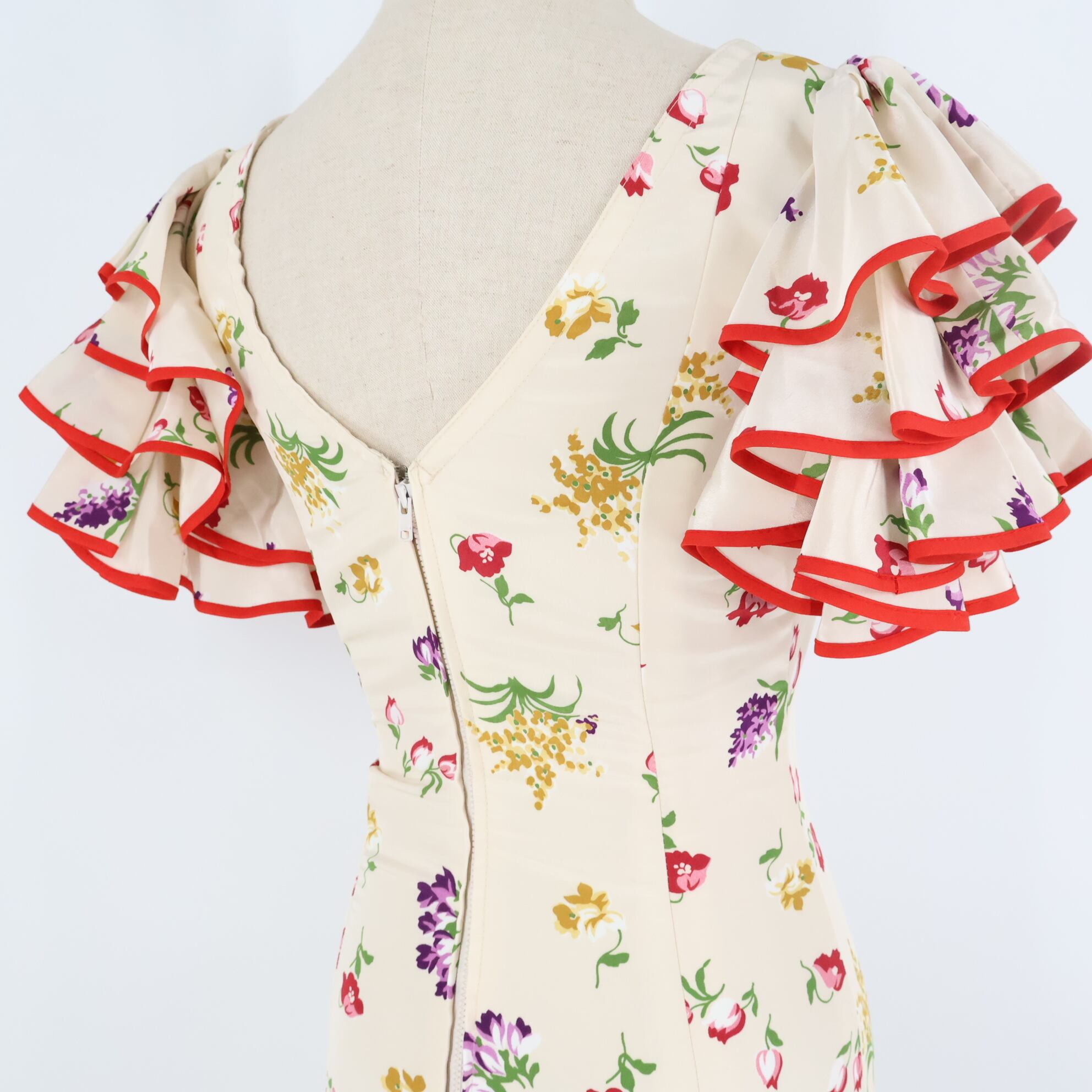 【美品 日本製 フラメンコ衣装】アイボリー naja ナジャ ワンピース ドレス バタデコーラ ボランテ フリル 花柄 赤 豪華 フラメンコ 衣装 日本製 ワンピース ドレス 花柄 ボランテ おしゃれ ダンス コスチューム パーティー セクシー 可愛い 特別な日 ナジャ