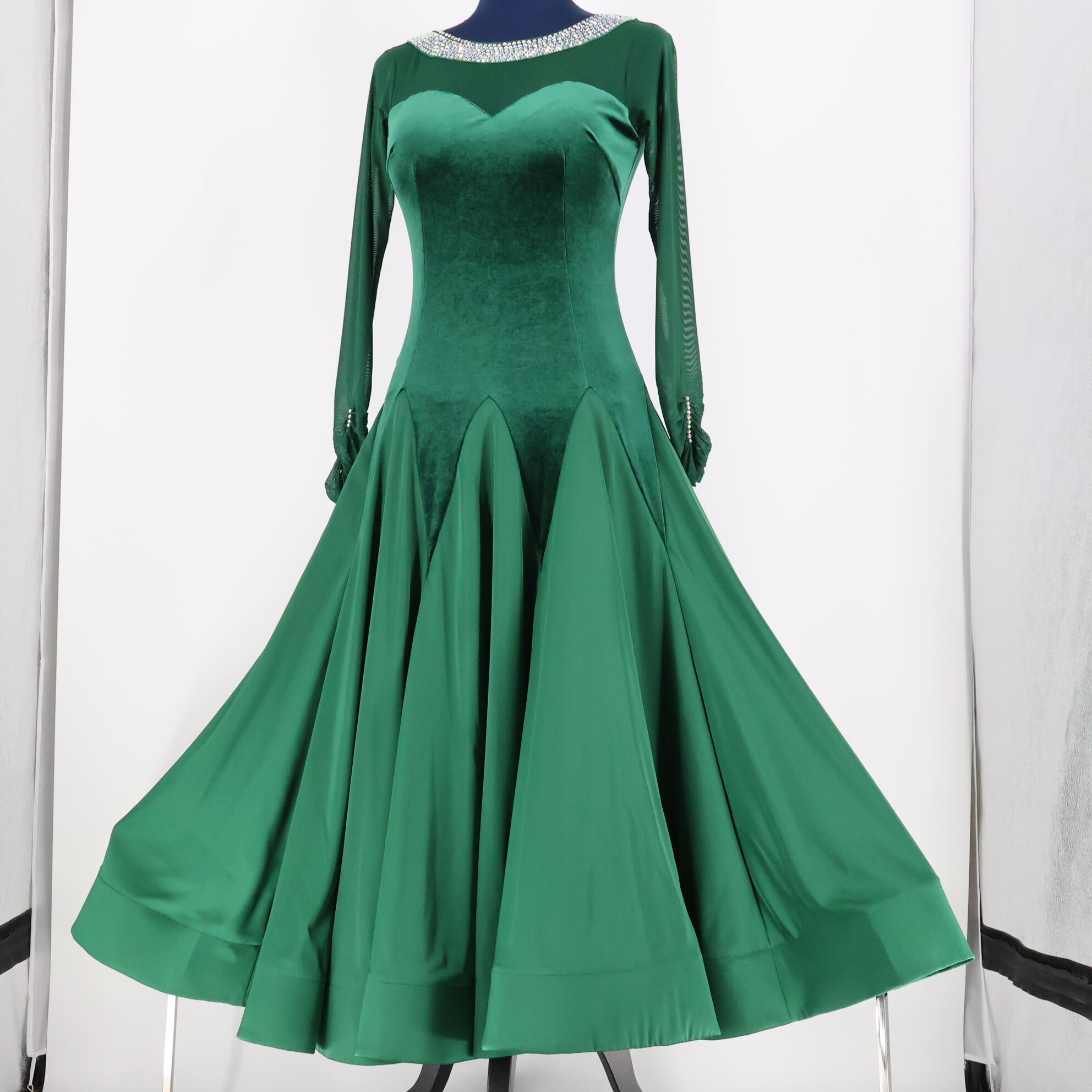 #社交ダンス #衣装 #ワンピース #ドレス #ベロア #深緑 #高級感 #パーティ #発表会 #ファッション #オシャレ #大人 #女性用 #エレガント #イベント #ダンスウェア #パーティードレス #ステージ衣装 #フィット感 #ENUTSU