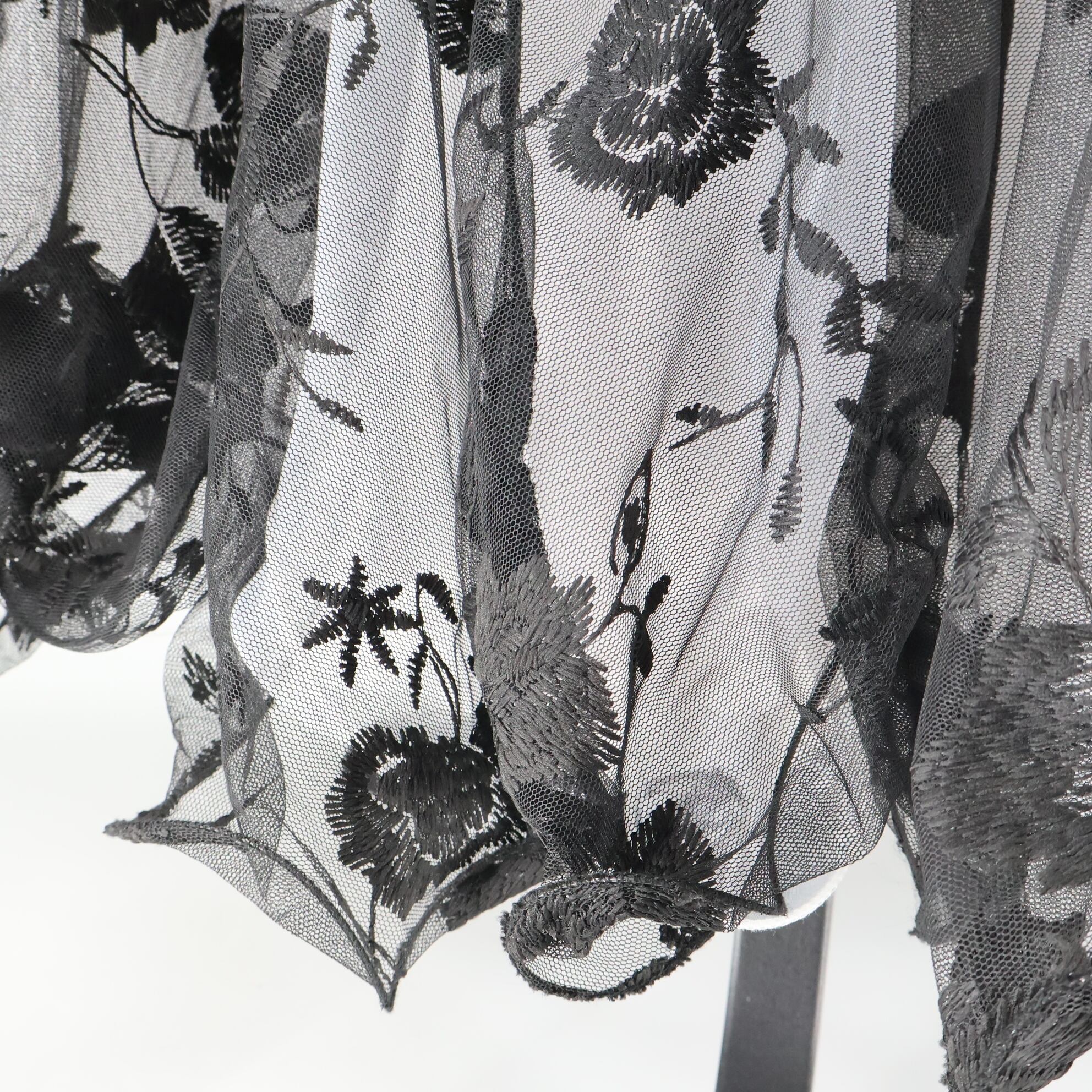 【美品 社交ダンス衣装】ホワイト ワンピース ドレス ブラック 白 黒 花柄 フリル レース ふんわり デモ 競技用 発表会 上品 Mサイズ 背面ファスナー 伸縮性 胸パッド スカート 3枚重ね 落ち着いた色味 おしゃれ 膨らむ スタイリッシュ