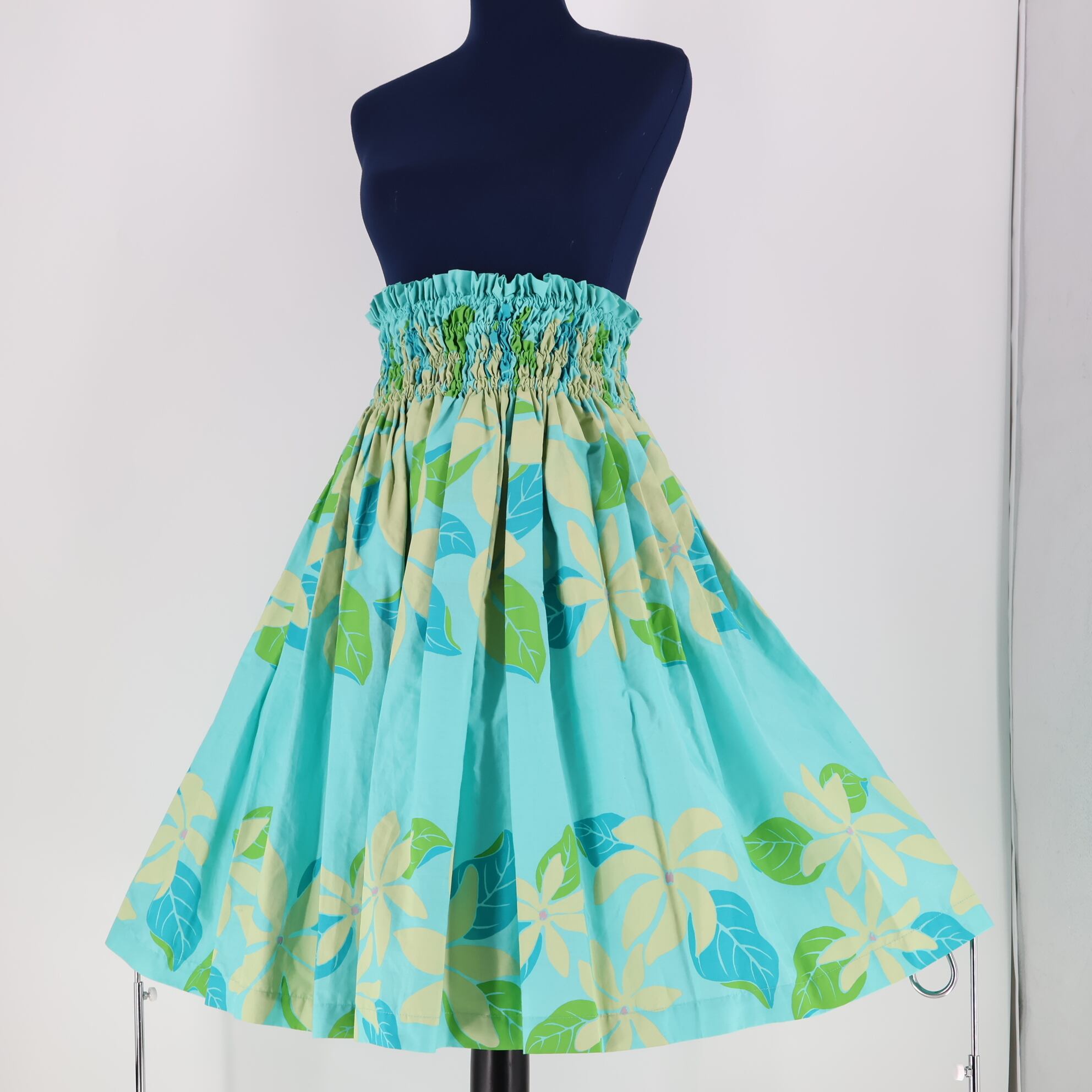 【日本製 フラダンス衣装】スカイブルー セキノレーシングスポーツ パウスカート ティアレ柄 花柄 クリーム色 アロハ かわいい