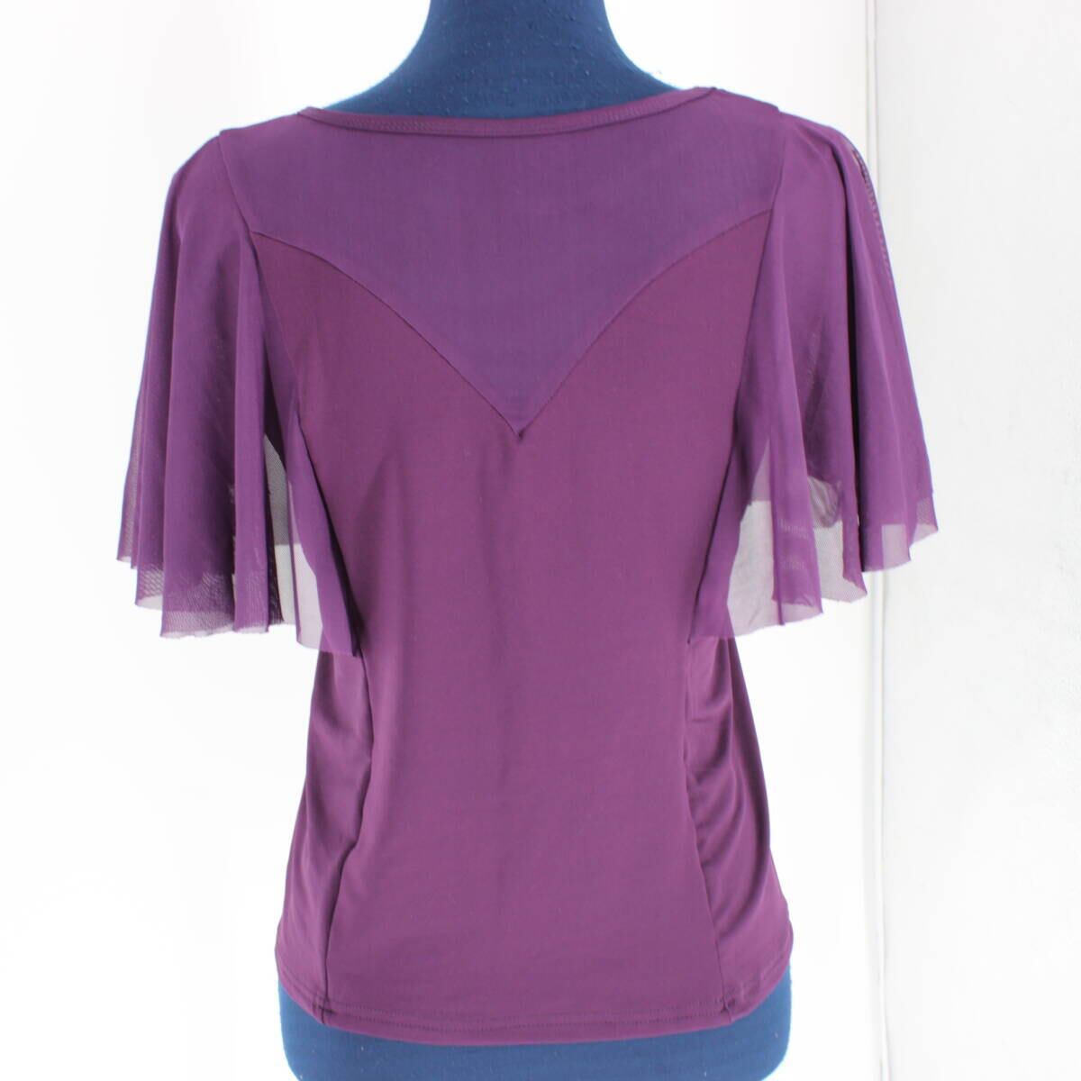 【美品 社交ダンス衣装】トップス レッスンウェア 練習着 紫 かわいい 可愛い 上品 シック XLサイズ ラインストーン パープル