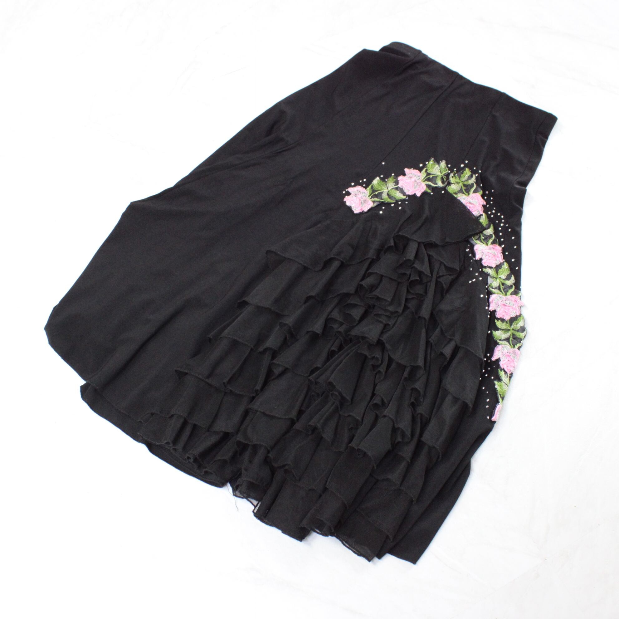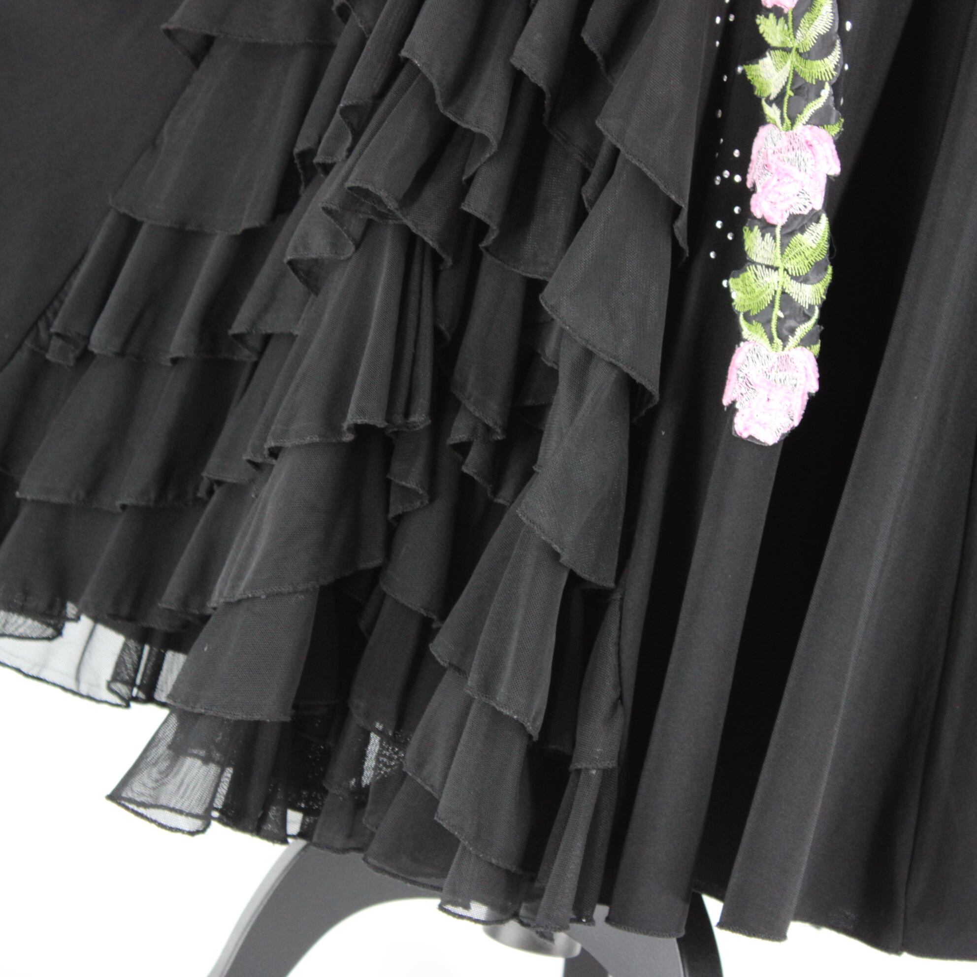 #社交ダンス #ダンス衣装 #スカート #ブラックスカート #花柄デザイン #ラインストーン付き #ICHIOKU #フェミニンスタイル #エレガント #お洒落 #ダンスウェア #華やか #動きやすい #ダンスファッション #シンプルスタイル #フローラル #美しいシルエット #ダンスコーデ #ステージ衣装 #ENUTSU