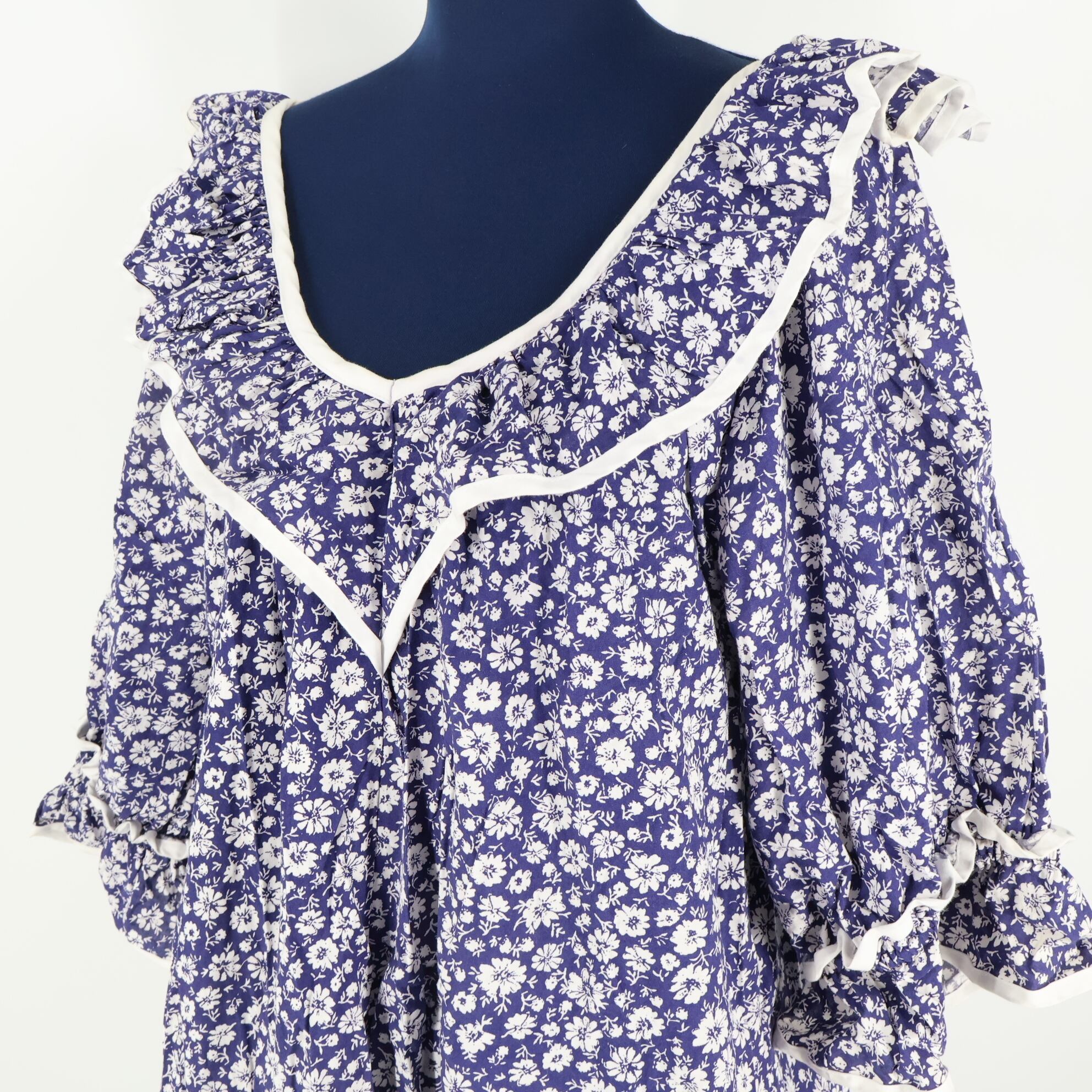 【ハワイ製 フラダンス衣装】ネイビー T&L MUUMUU FACTORY ワンピース ドレス 花柄 白 紺 華やか 七分袖 ハワイアン かわいい