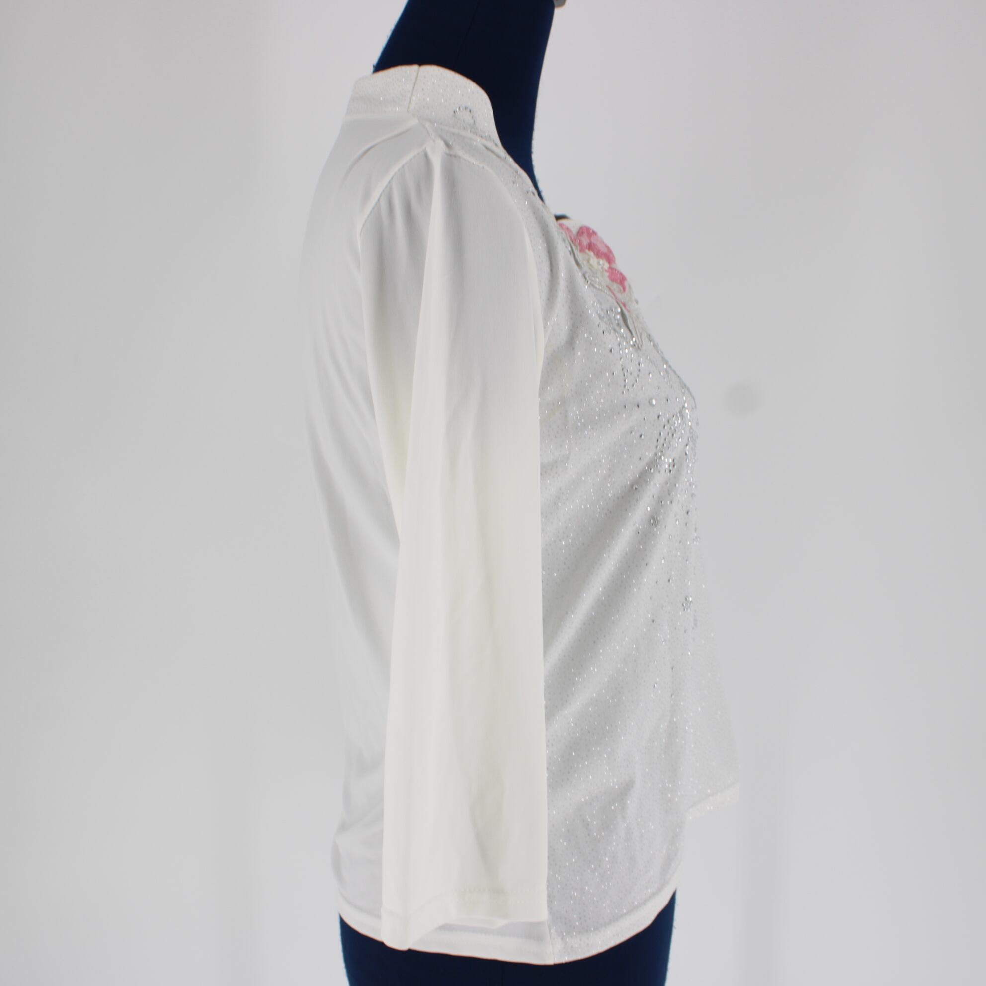 【社交ダンス衣装】トップス レッスンウェア 練習着 白 ホワイト ピンク ラインストーン ラメ 花柄 豪華 ゴージャス 清楚 上品