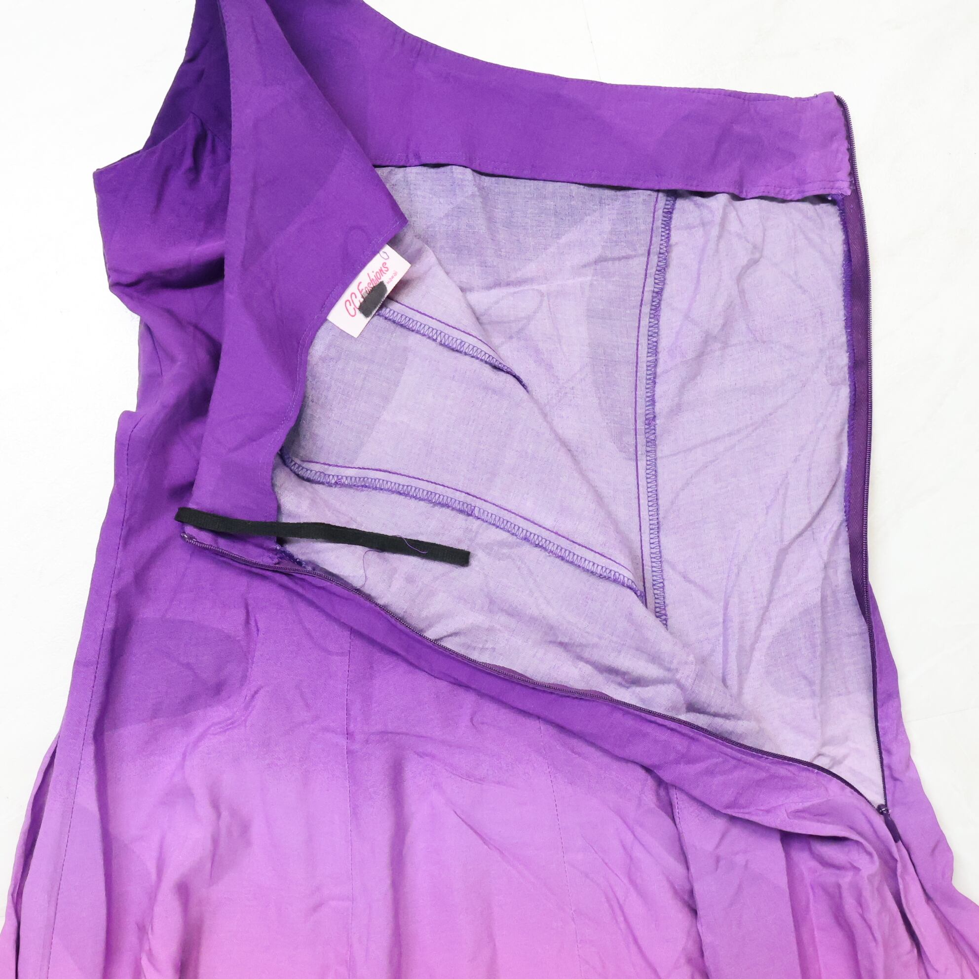 【フラダンス衣装】パープル CC Fashions ワンピース ドレス ティアレ柄 紫 フリル グラデーション ワンショルダー 鮮やか 花
