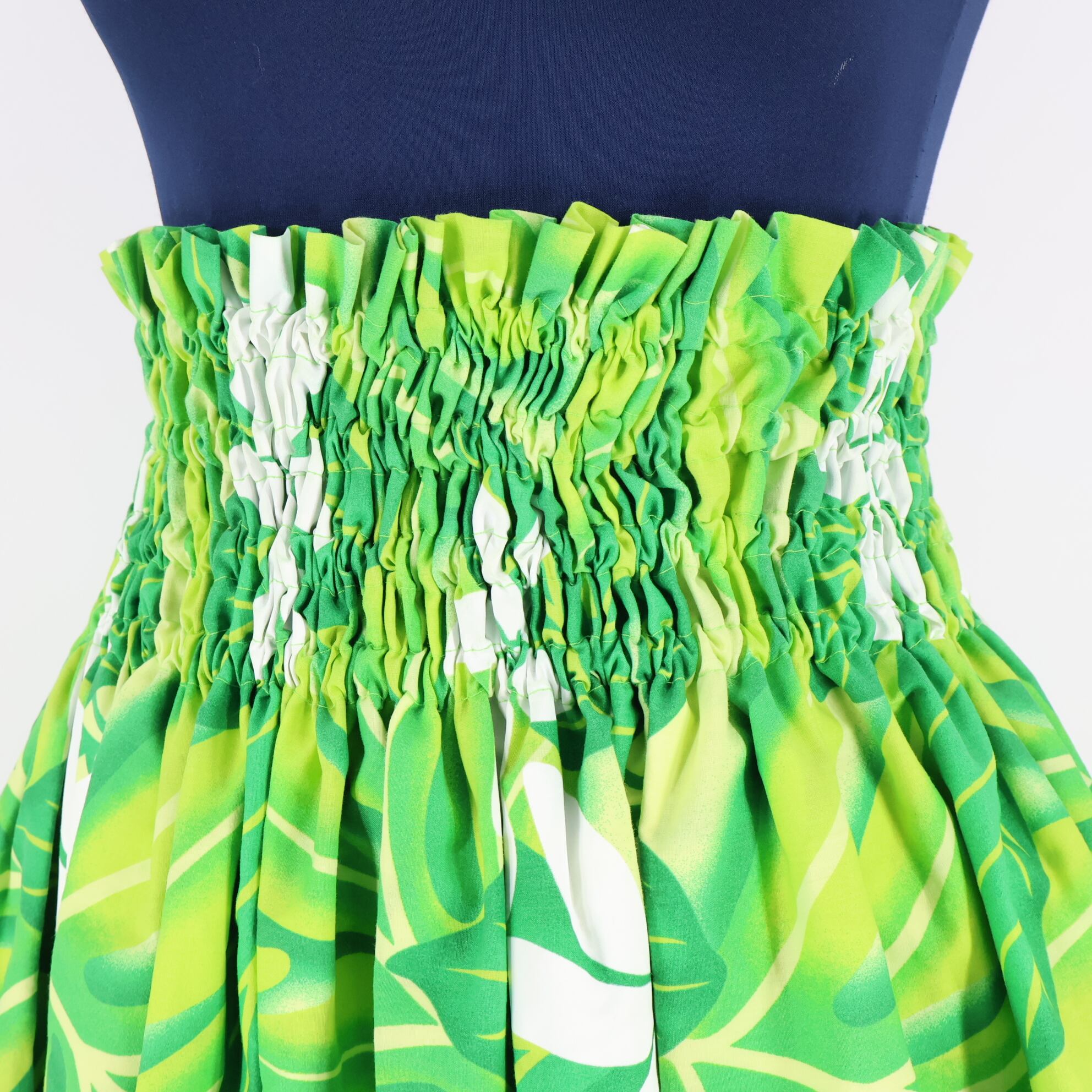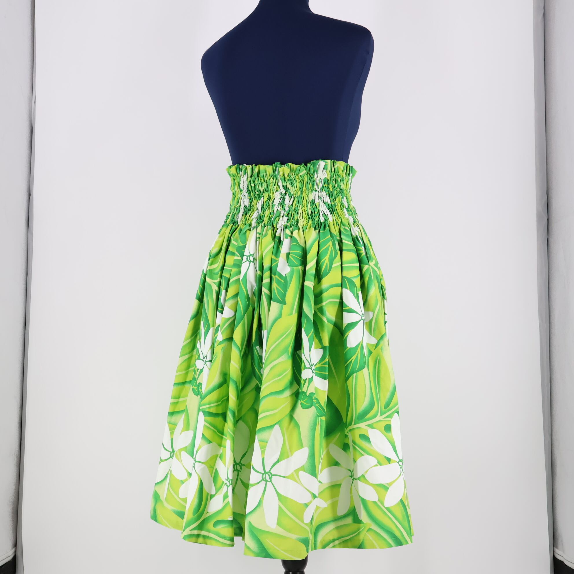【フラダンス衣装】ライトグリーン パウスカート ティアレ柄 花柄 白 黄緑 爽やか 華やか 緑 ハワイアン アロハ かわいい ゴム