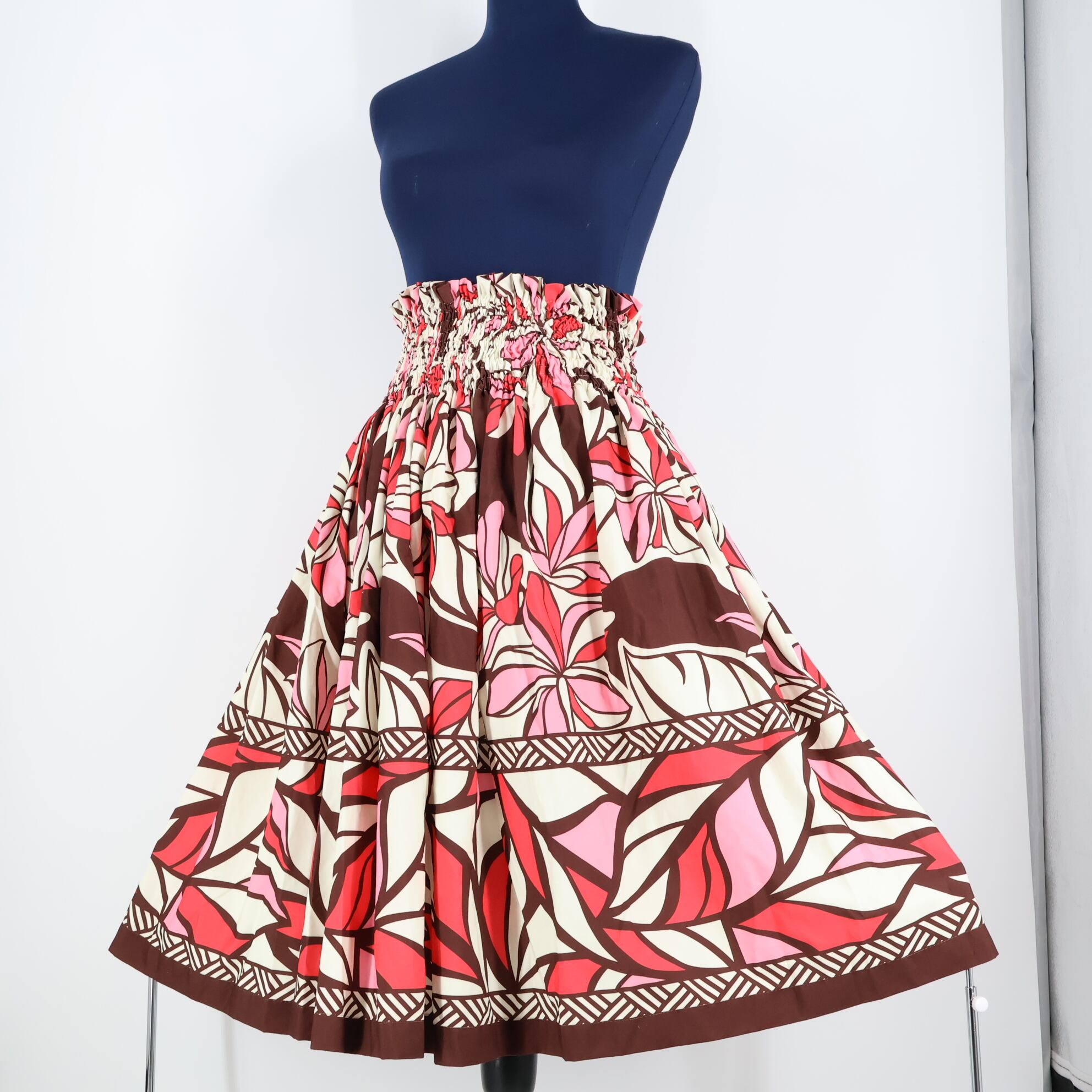 【美品 日本製 フラダンス衣装】ブラウン Miu Mint Aloha パウスカート 花柄 ピンク 白 茶 ハワイアンプリント アロハ 可愛い