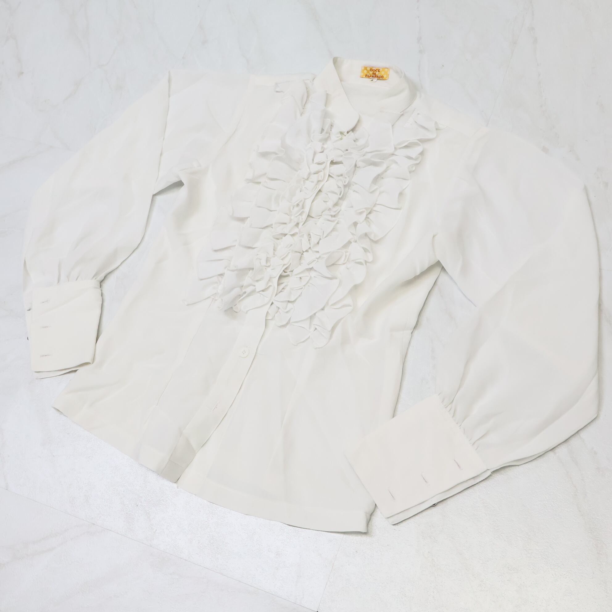 【美品 フラメンコ衣装】ホワイト docedelflamenco ドセデルフラメンコ ブラウス トップス 長袖 白 無地 フリル レース 薄い