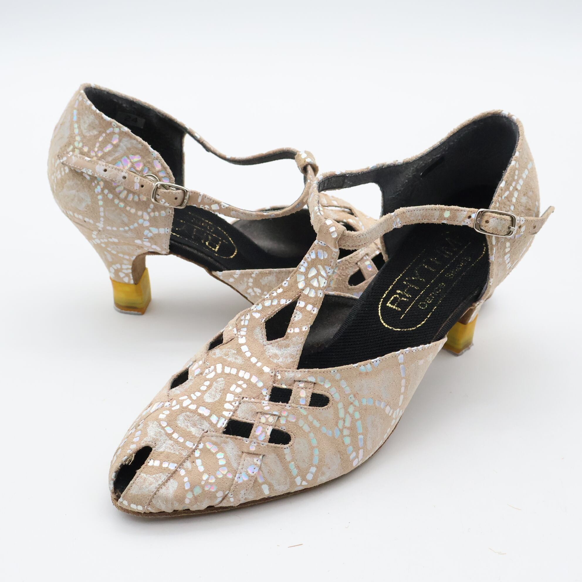 【社交ダンス用衣装】24CM相当 RHYTHM リズム ベージュ スウェード生地 ダンス シューズ レディース用 モダン シルバー ラメ 社交ダンス ダンスシューズ ヒール ダンス衣装 おしゃれ 快適