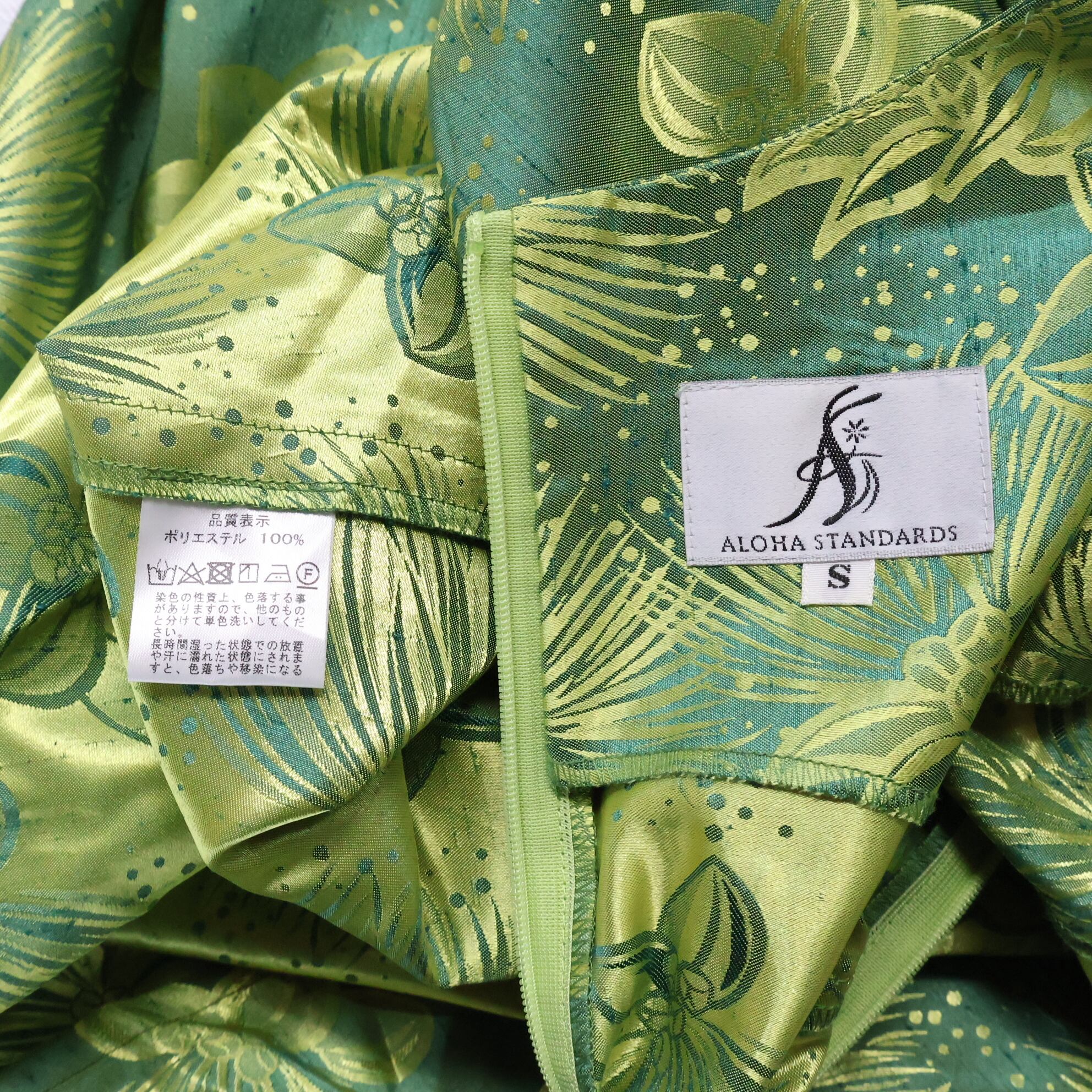 【日本製 フラダンス衣装】グリーン ALOHA STANDARDS アロハスタンダード ワンピース ドレス レフア柄 緑 金 セット 花柄