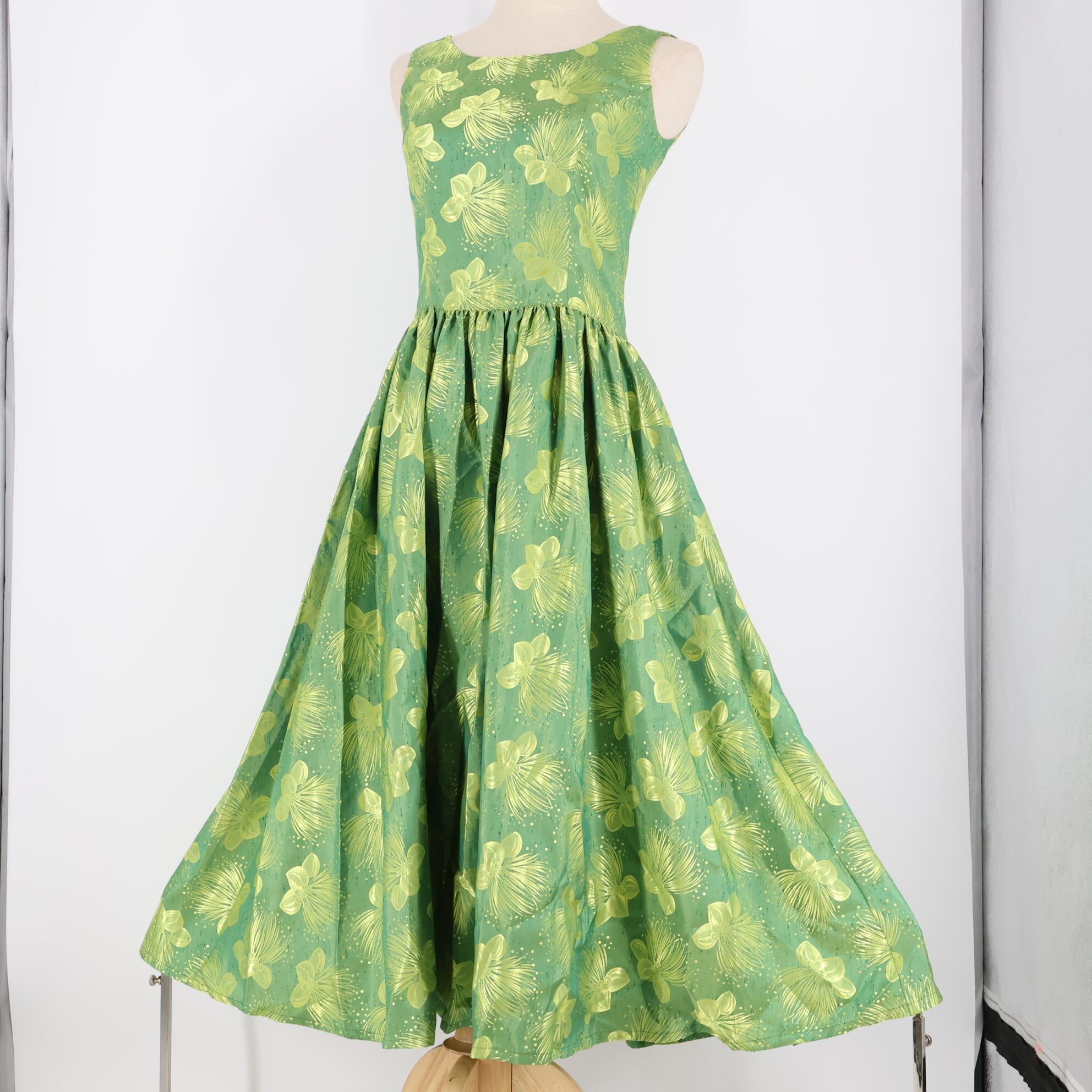 #フラダンス #フラダンス衣装 #ワンピース #ドレス #レフア柄 #グリーン #緑 #ゴールド #金 #花柄 #ノースリーブ #ダンス衣装 #ダンスコスチューム #ステージ衣装 #古着 #中古 #ENUTSU