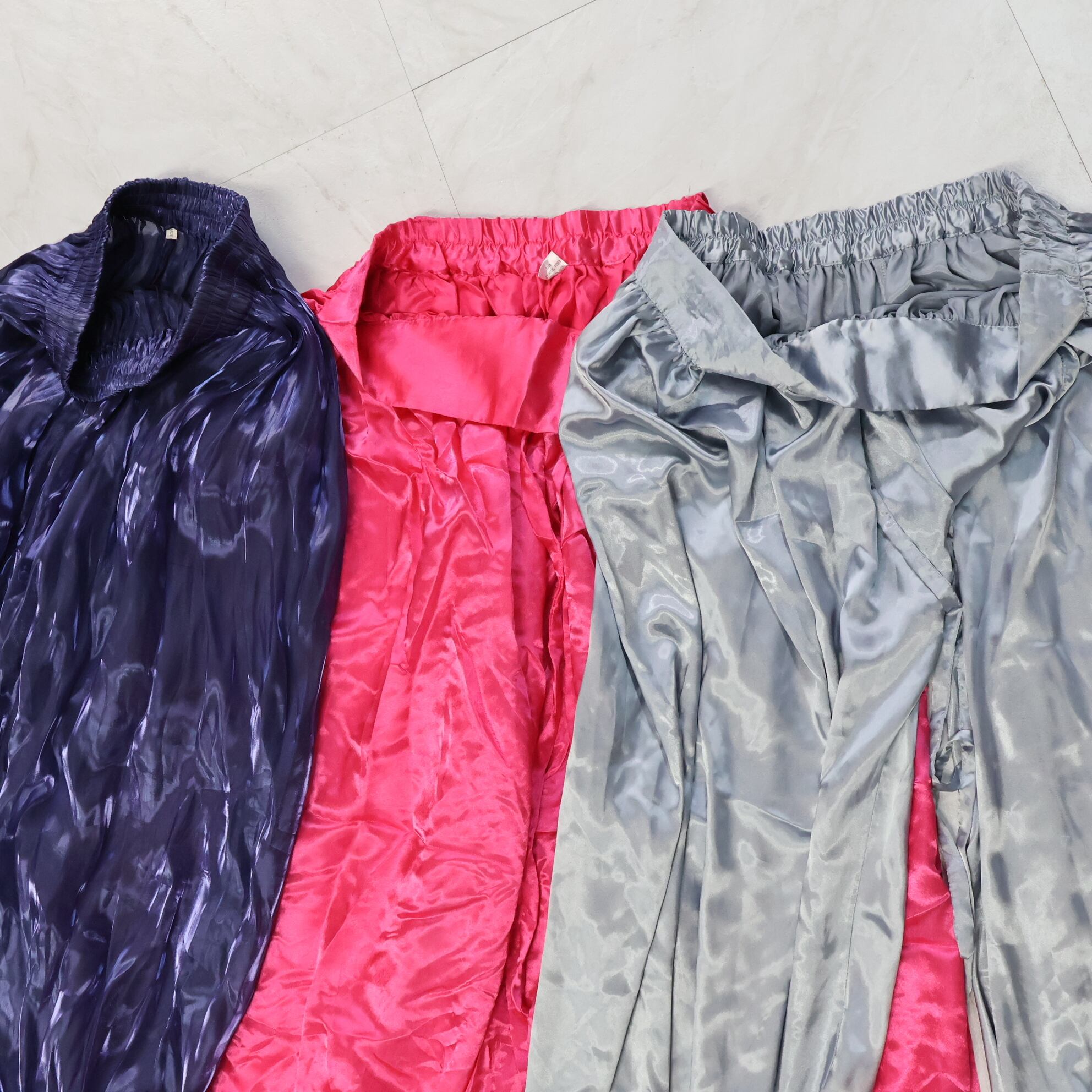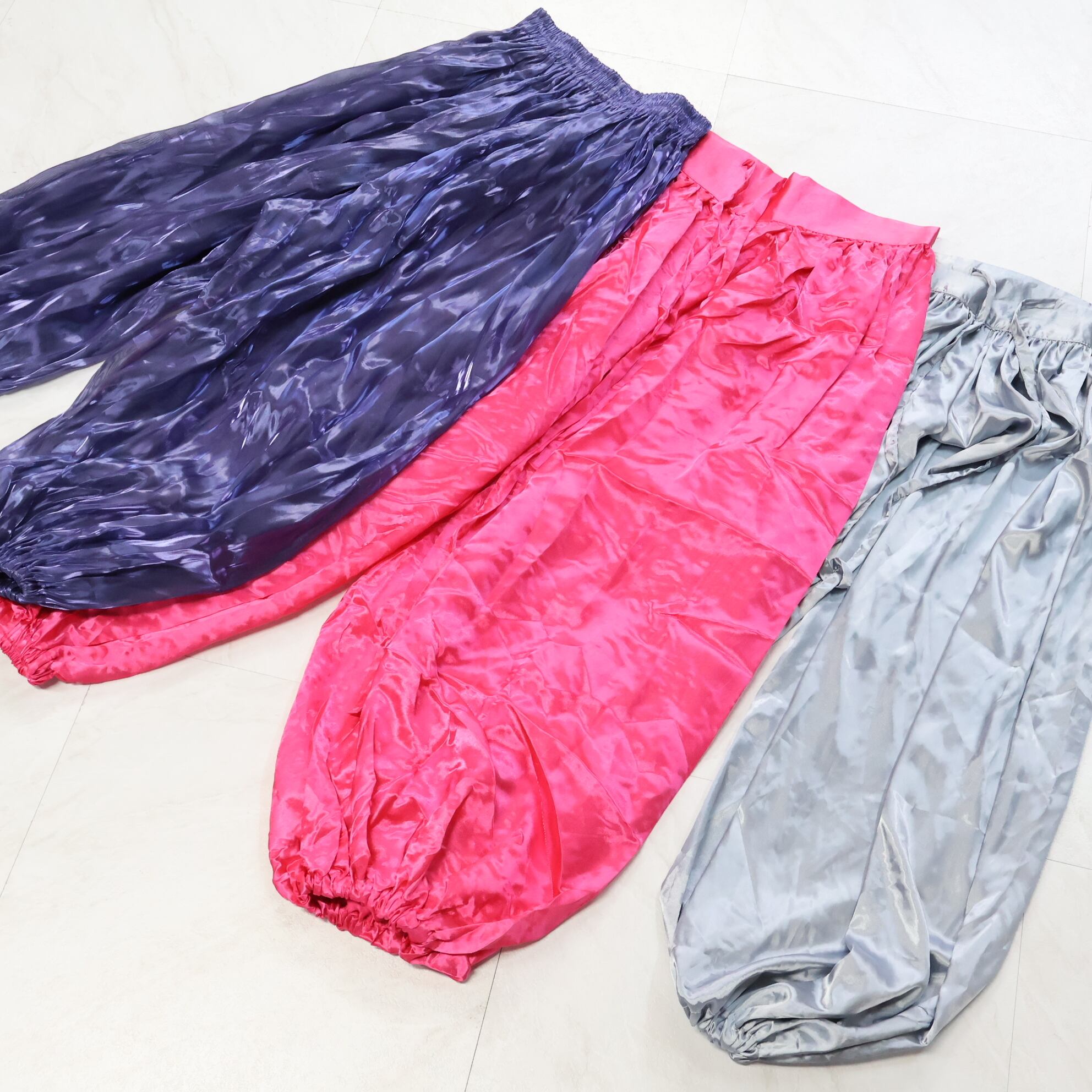 【ベリーダンス用 アラジン衣装】グレー ピンク ネイビー ハーレムパンツ 3枚セット 鼠色 紺 サテン生地 光沢 艶 履き心地