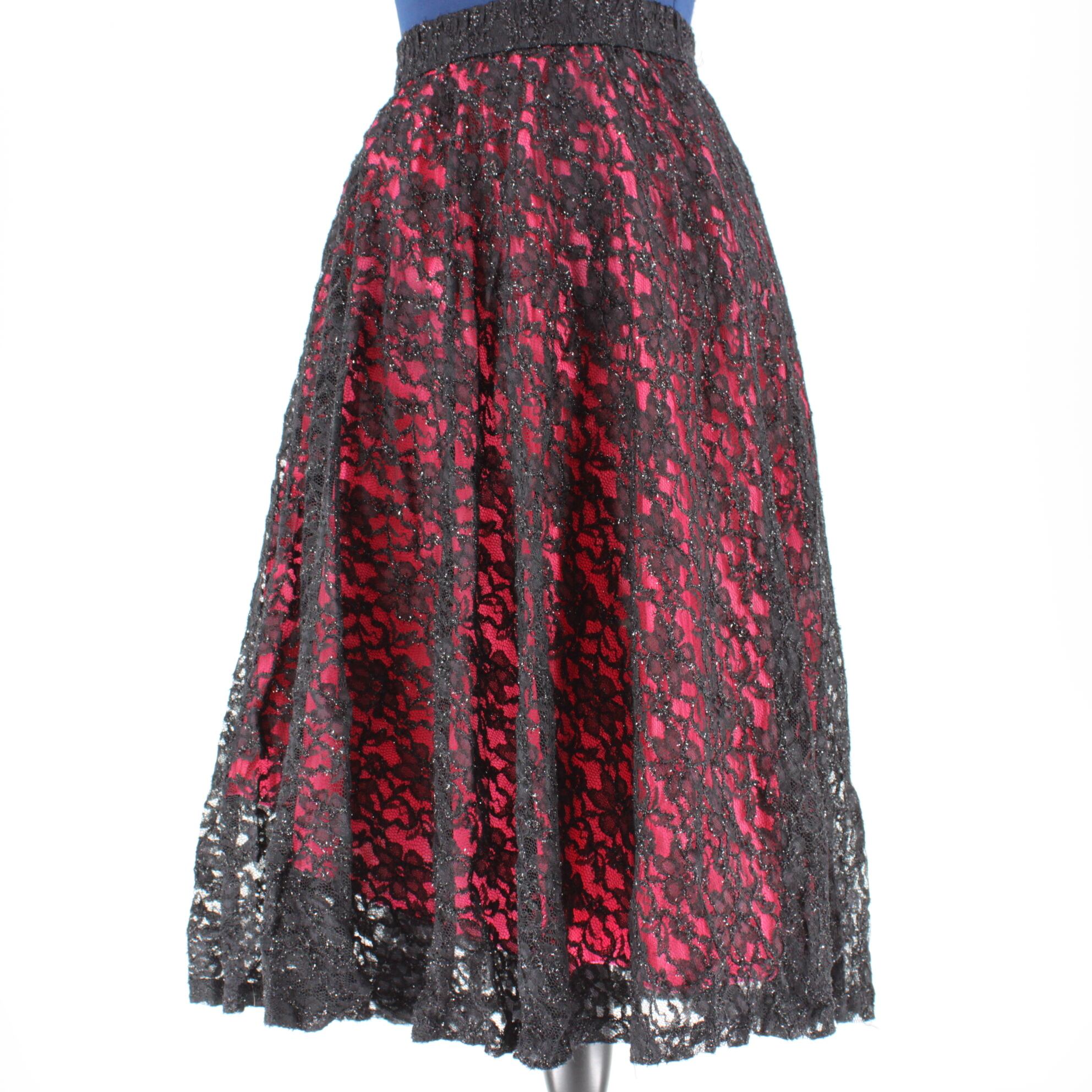 【美品 日本製社交ダンス衣装】スカート レッスンウェア 練習着 黒 ブラック マゼンダ ピンク 花柄 レース かわいい 派手 上品