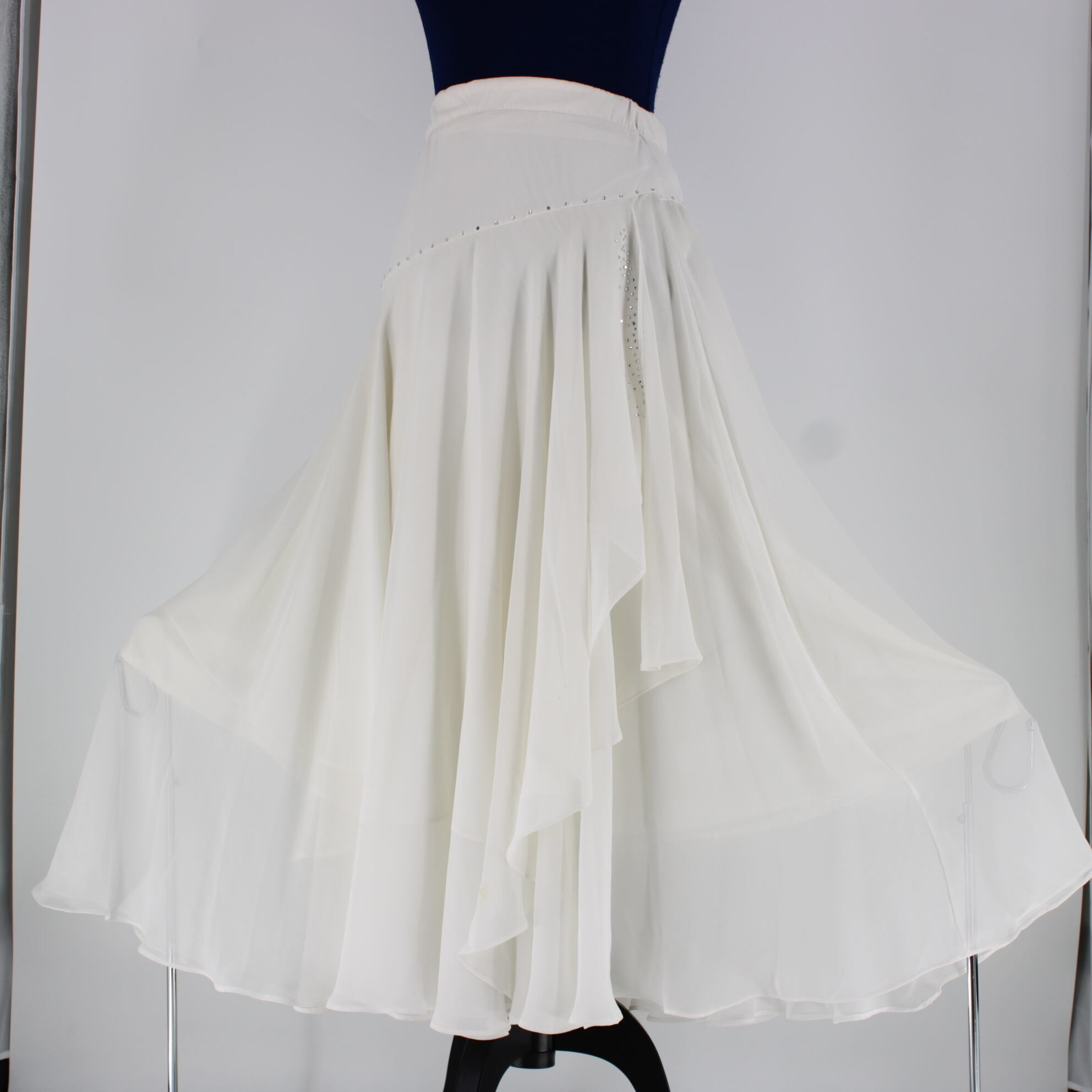 #社交ダンス #ダンス衣装 #スカート #ホワイト #シンプルデザイン #ラインストーン #エレガント #動きやすい #ステージ映え #ダンスファッション #パフォーマンス #ダンスウェア #華やか #フレアスカート #おしゃれ #ダンスコスチューム #ステージ衣装 #古着 #中古 #ENUTSU