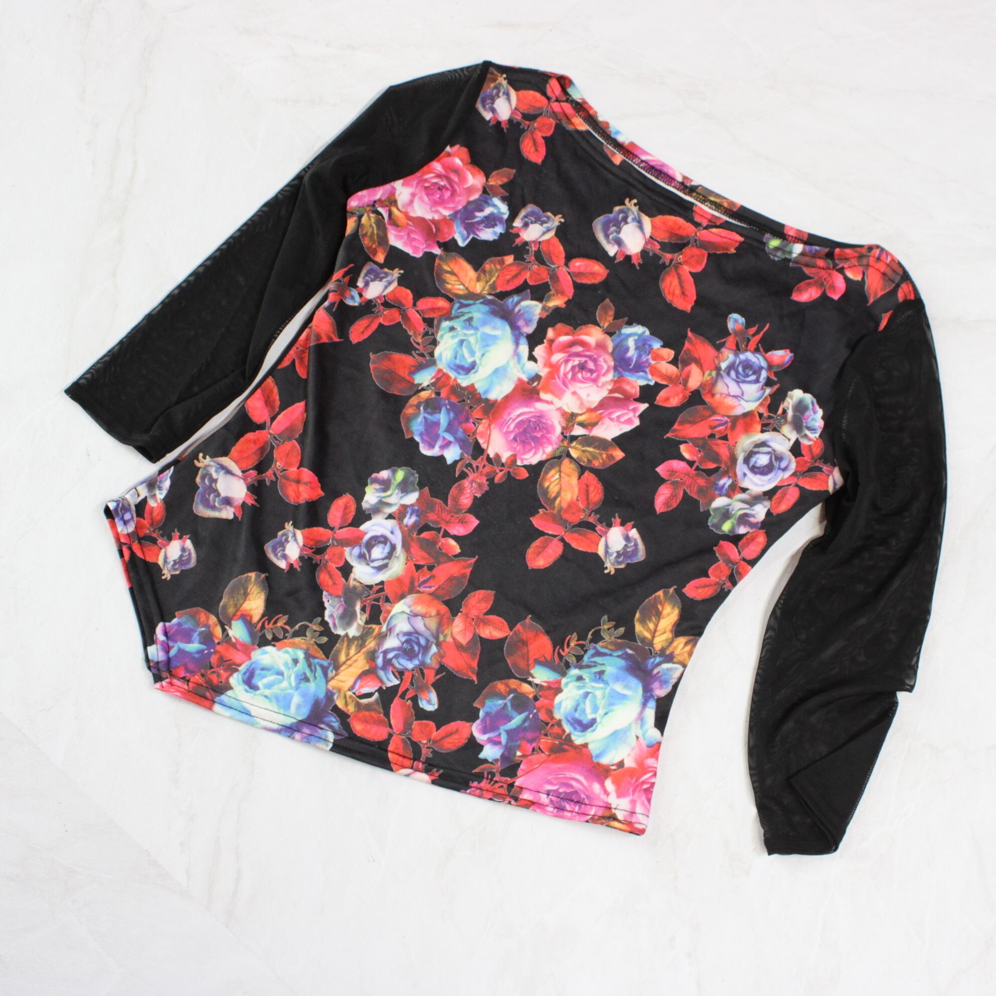 【美品 社交ダンス衣装】上下セット ICHIOKU イチオク 黒 ブラック レッスンウェア 練習着 赤 水色 青 紫 花柄 バラ 薔薇 派手