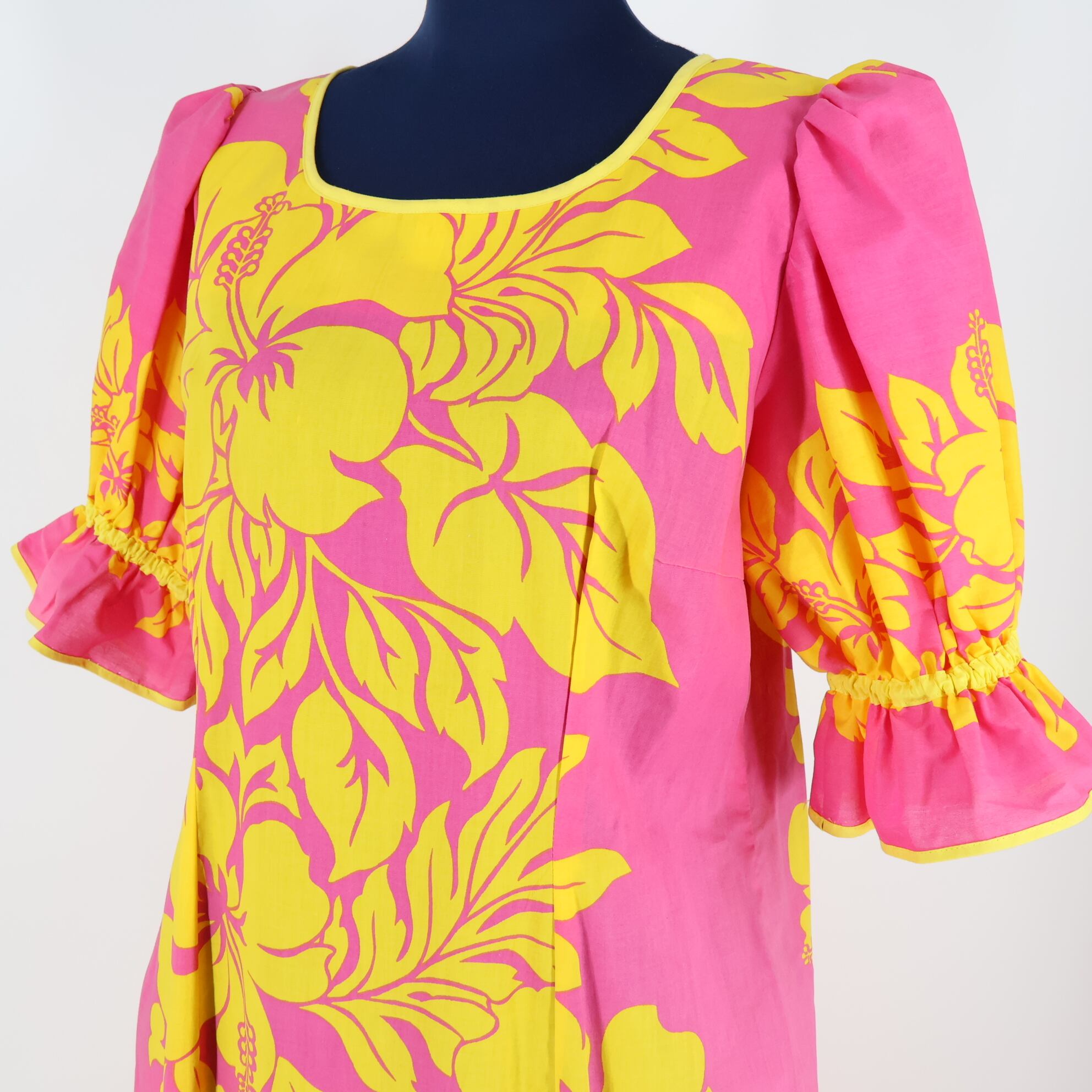 #フラダンス #フラダンス衣装 #ワンピース #ドレス #ピンク #ハイビスカス柄 #黄 #イエロー #リボン #華やか #鮮やか #明るい #ハワイアン #かわいい #ダンス衣装 #ダンスコスチューム #ステージ衣装 #古着 #中古 #ENUTSU