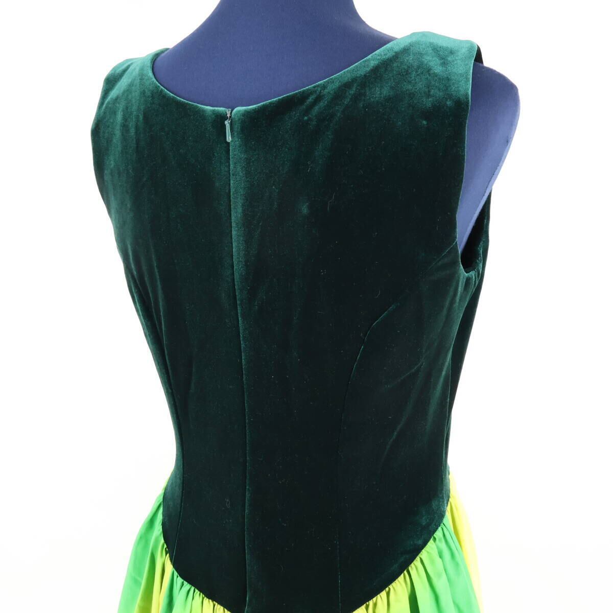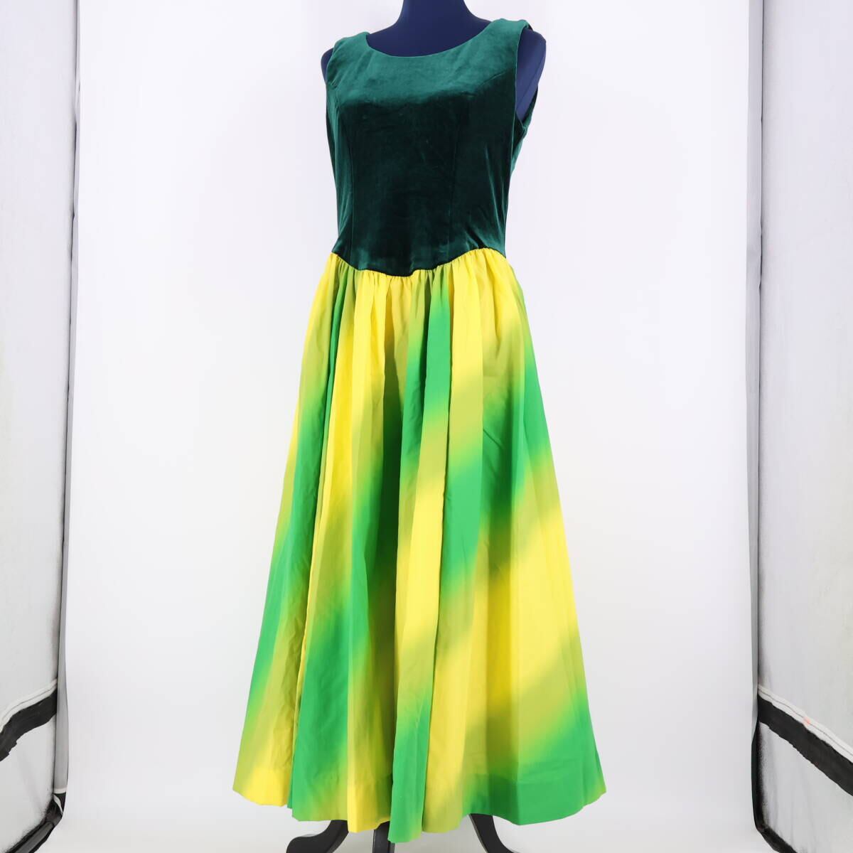 【フラダンス衣装】グリーン ワンピース ドレス ベロア 緑 黄色 グラデーション ノースリーブ 光沢 黄緑 袖なし 高級感 可愛い