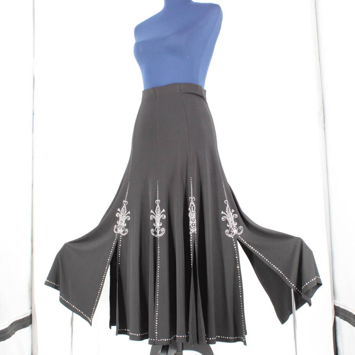 【美品 社交ダンス衣装】スカート レッスンウェア 練習着 黒 ブラック ラインストーン 無地 シンプル かわいい 可愛い 上品