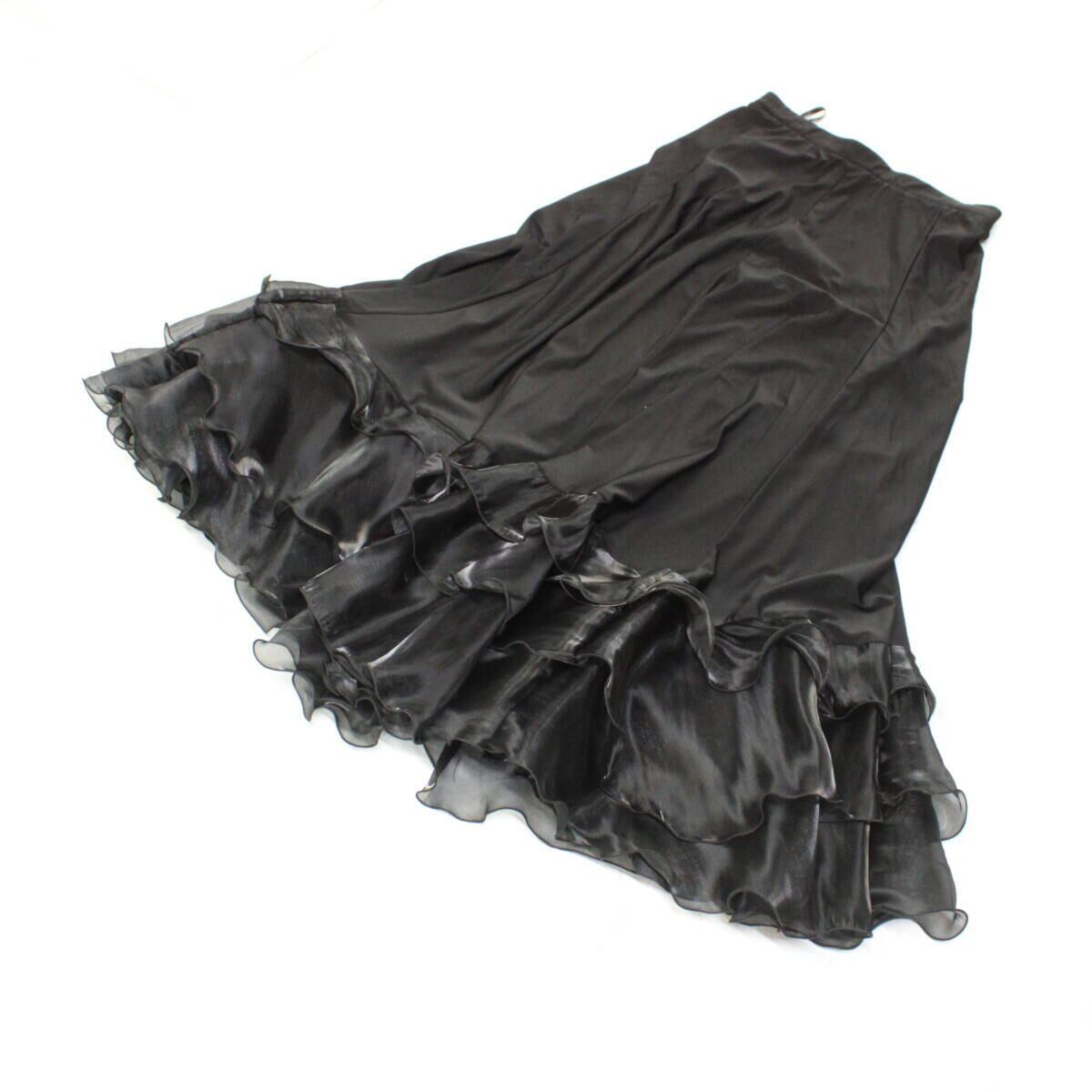 【美品 社交ダンス衣装】スカート レッスンウェア 練習着 黒 ブラック 無地 シンプル かわいい 可愛い 上品 シック 気品 清楚