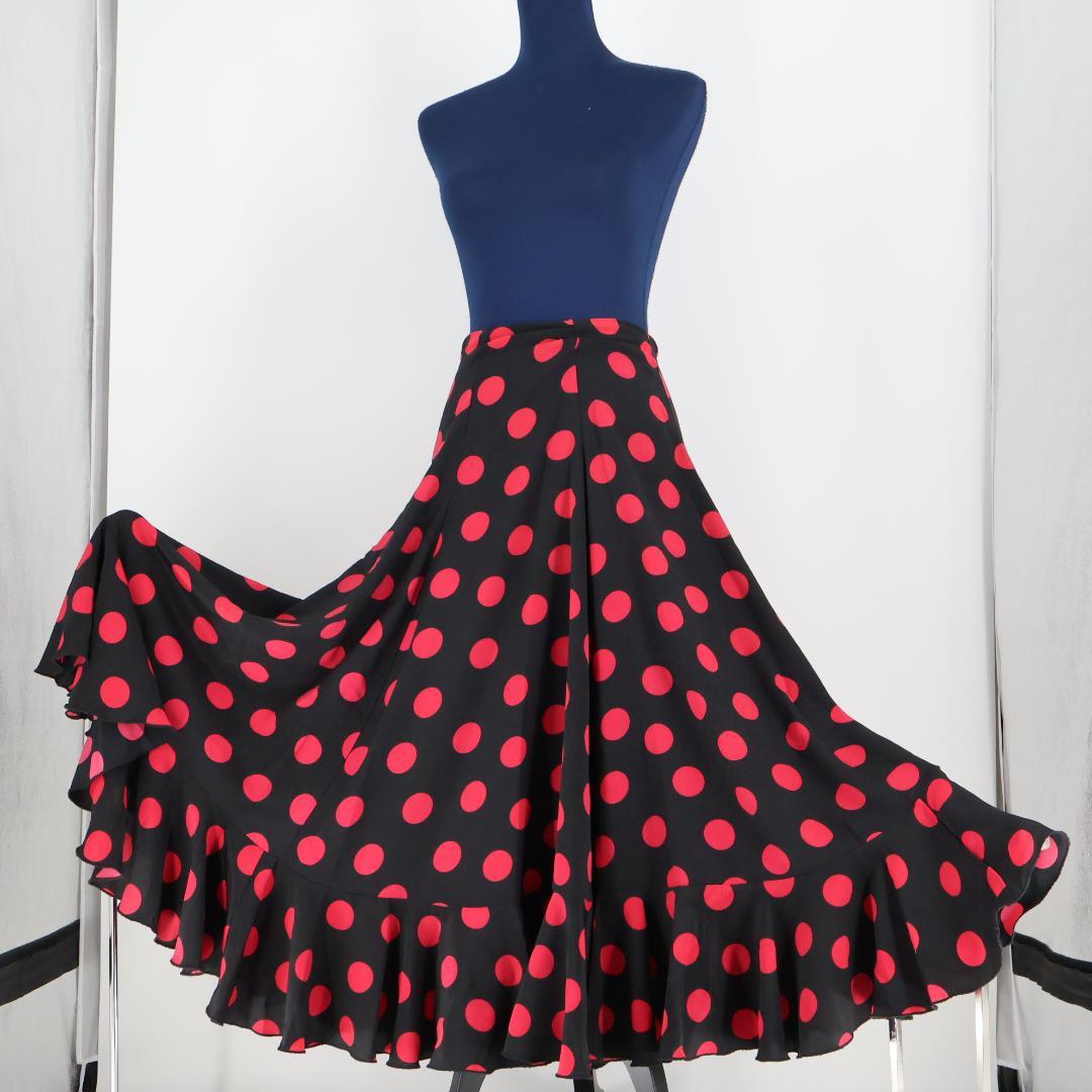 【フラメンコ衣装】ブラック CANELA PURA ファルダ スカート ボランテ 黒 ピンク フリル かわいい ドット 水玉 ポップ 柄