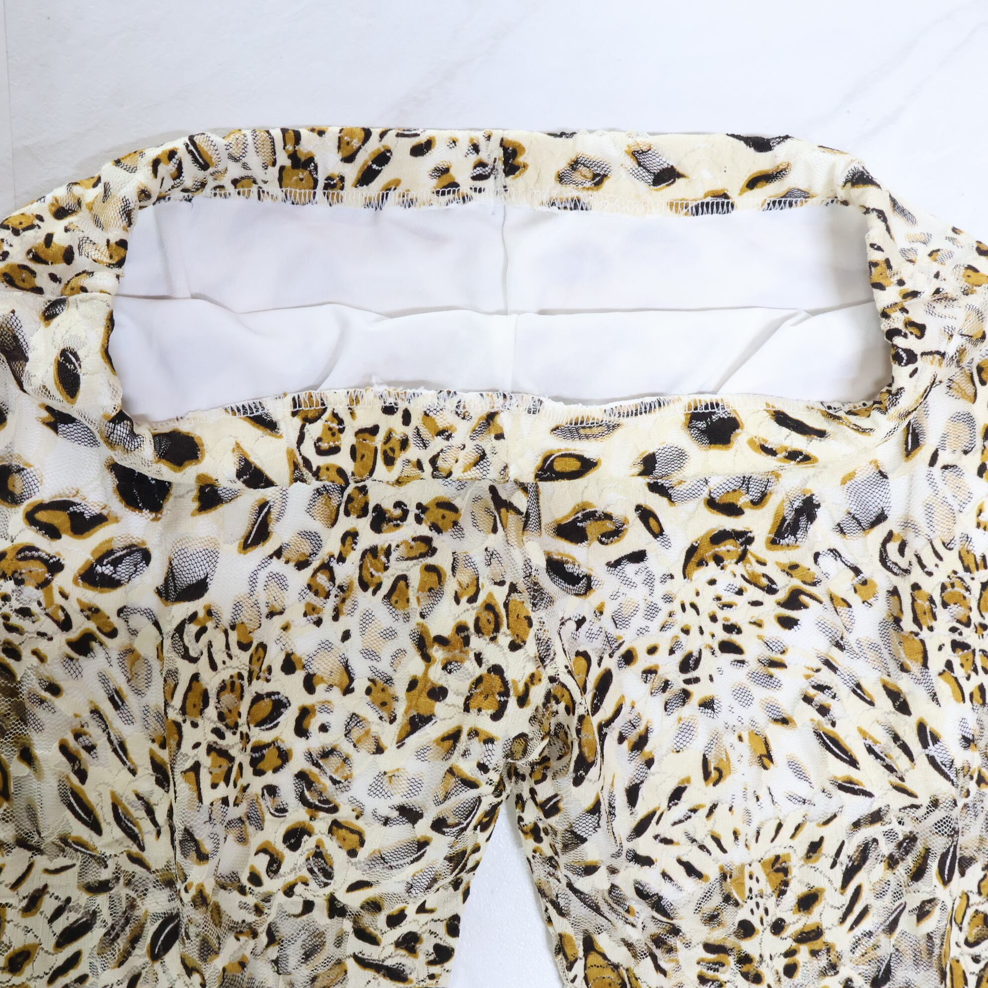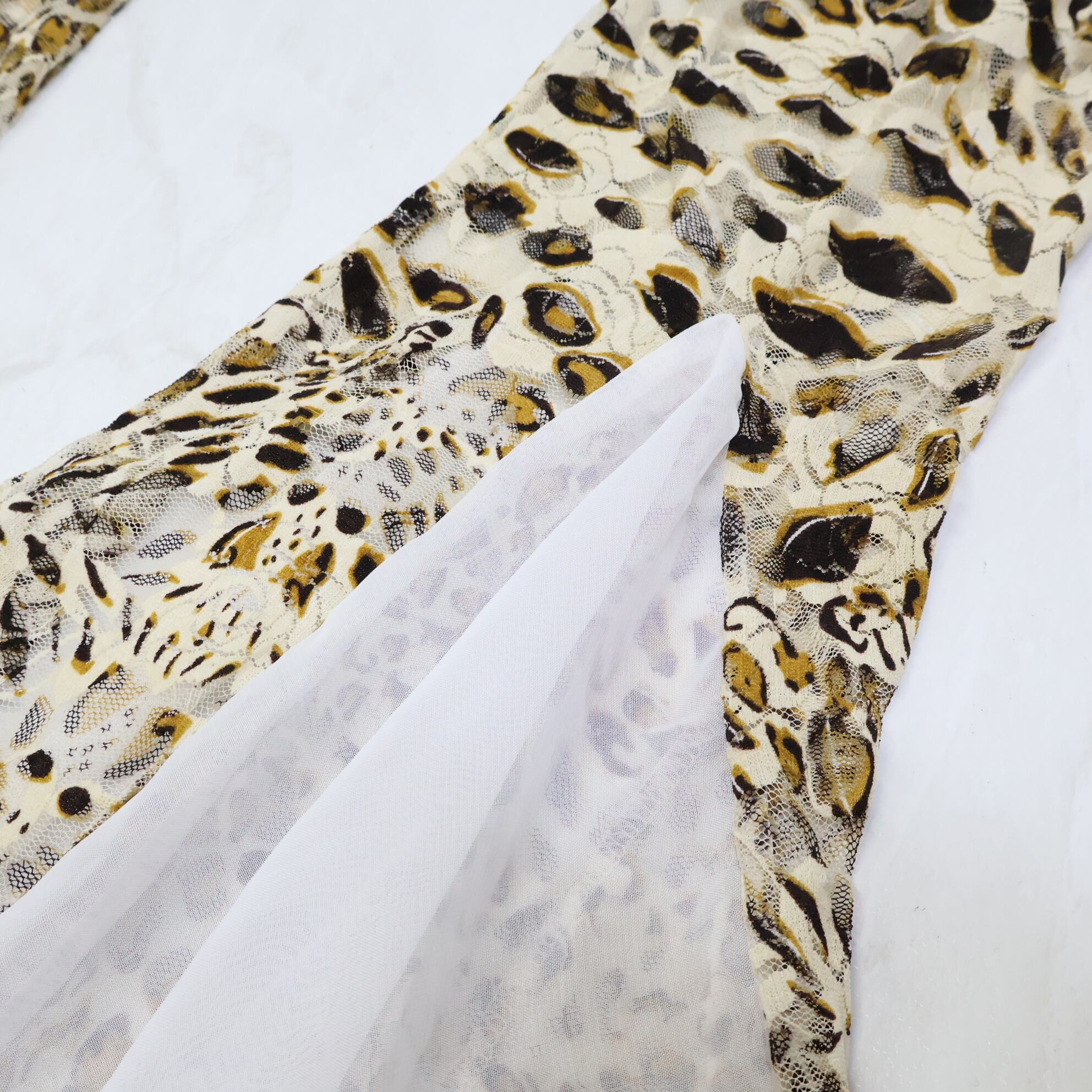 【ベリーダンス用衣装】アイボリー レッスン着 上下セット ヒョウ柄 トップス フレアパンツ セット フリル レース 豹 目立つ トップス ズボン 伸縮性 ゴム仕様 練習着 薄手 お洒落 ダンス衣装 目を引く 軽やか スタイリッシュ 快適 多用途