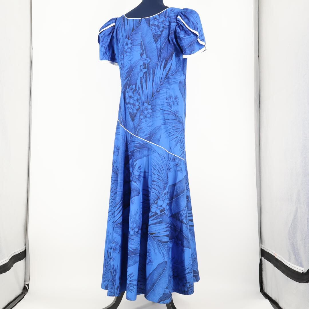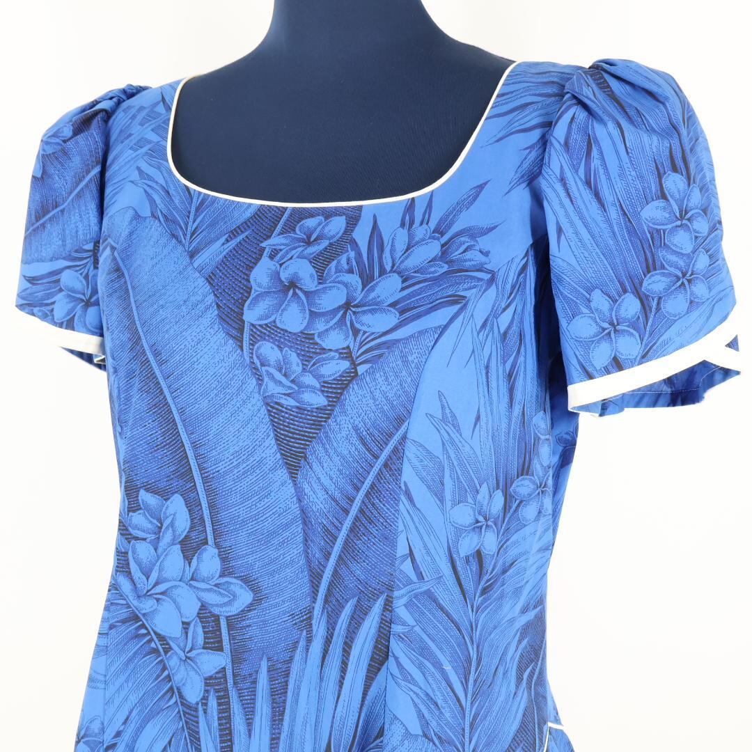 【フラダンス衣装】ブルー ワンピース ドレス プルメリア柄 青 花柄 ホワイト 白 鮮やか 華やか ハワイアン アロハ かわいい