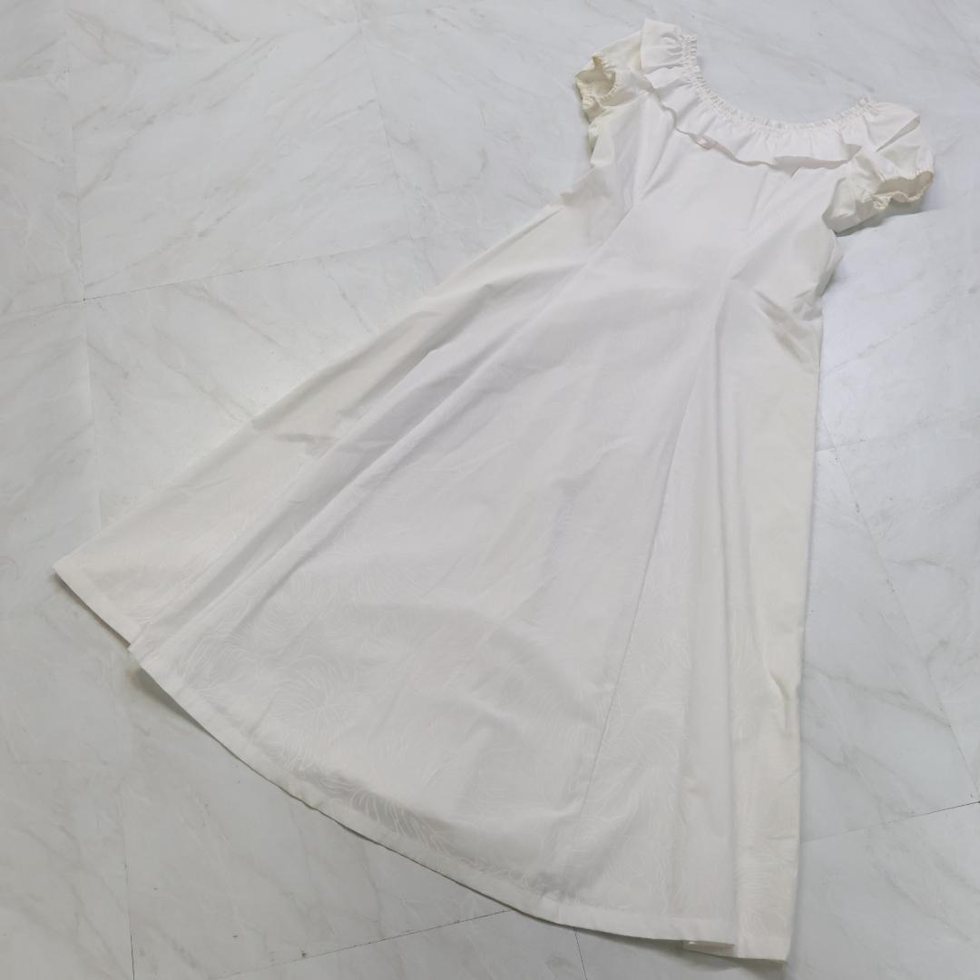 【フラダンス衣装】ホワイト ワンピース ドレス モンステラ柄 プルメリア柄 白 華やか 明るい ハワイアン アロハ かわいい 花