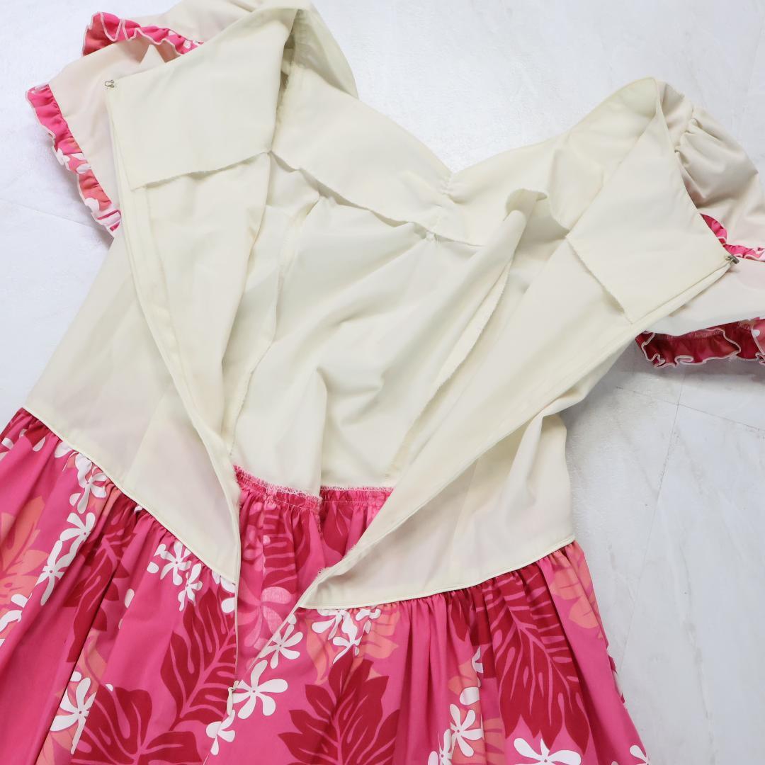 【フラダンス衣装】ホワイト ワンピース ドレス ティアレ柄 花柄 フリル ピンク 白 爽やか 華やか 明るい ハワイアン かわいい