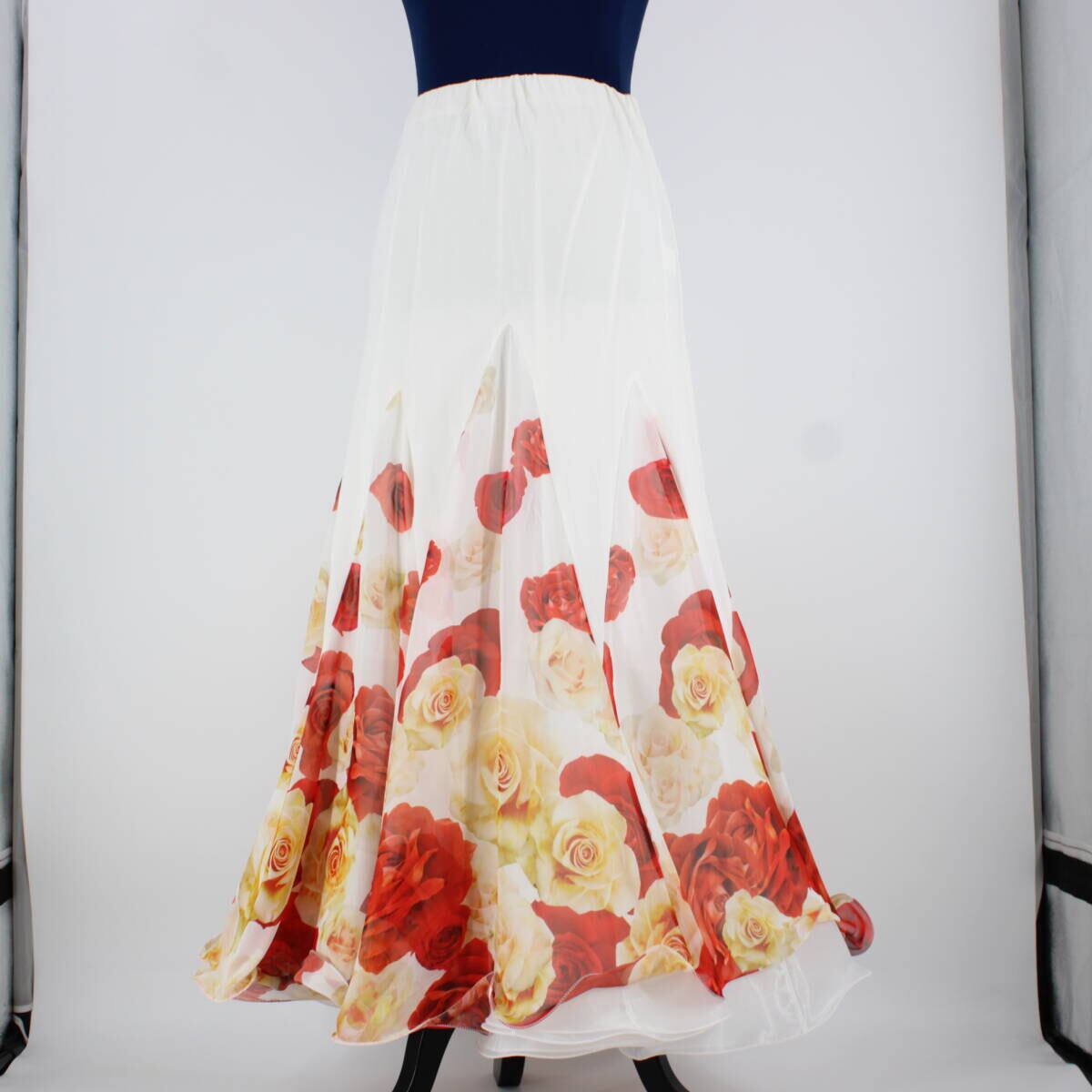【美品 社交ダンス衣装】スカート レッスンウェア 練習着 create-sun クリエイトサン 花柄 白 赤 ホワイト レッド オレンジ