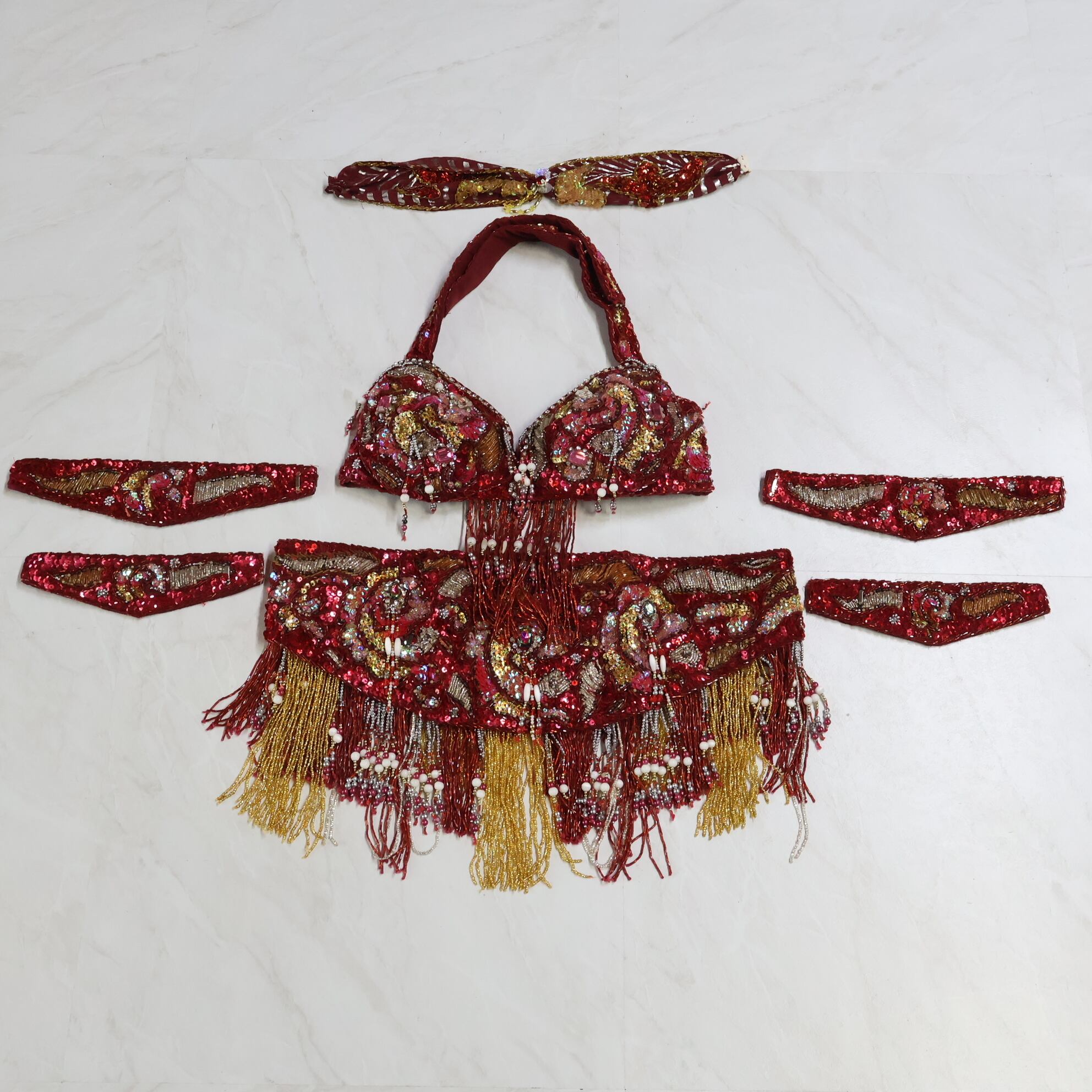 #ベリーダンス #オリエンタル衣装 #赤色 #豪華 #装飾 #トップス #ベルト #アクセサリー #ダンス衣装 #イベント #ステージ #ファッション #エキゾチック #ビーズ #ラメ #煌びやか #お洒落 #パフォーマンス #美しさ #ENUTSU