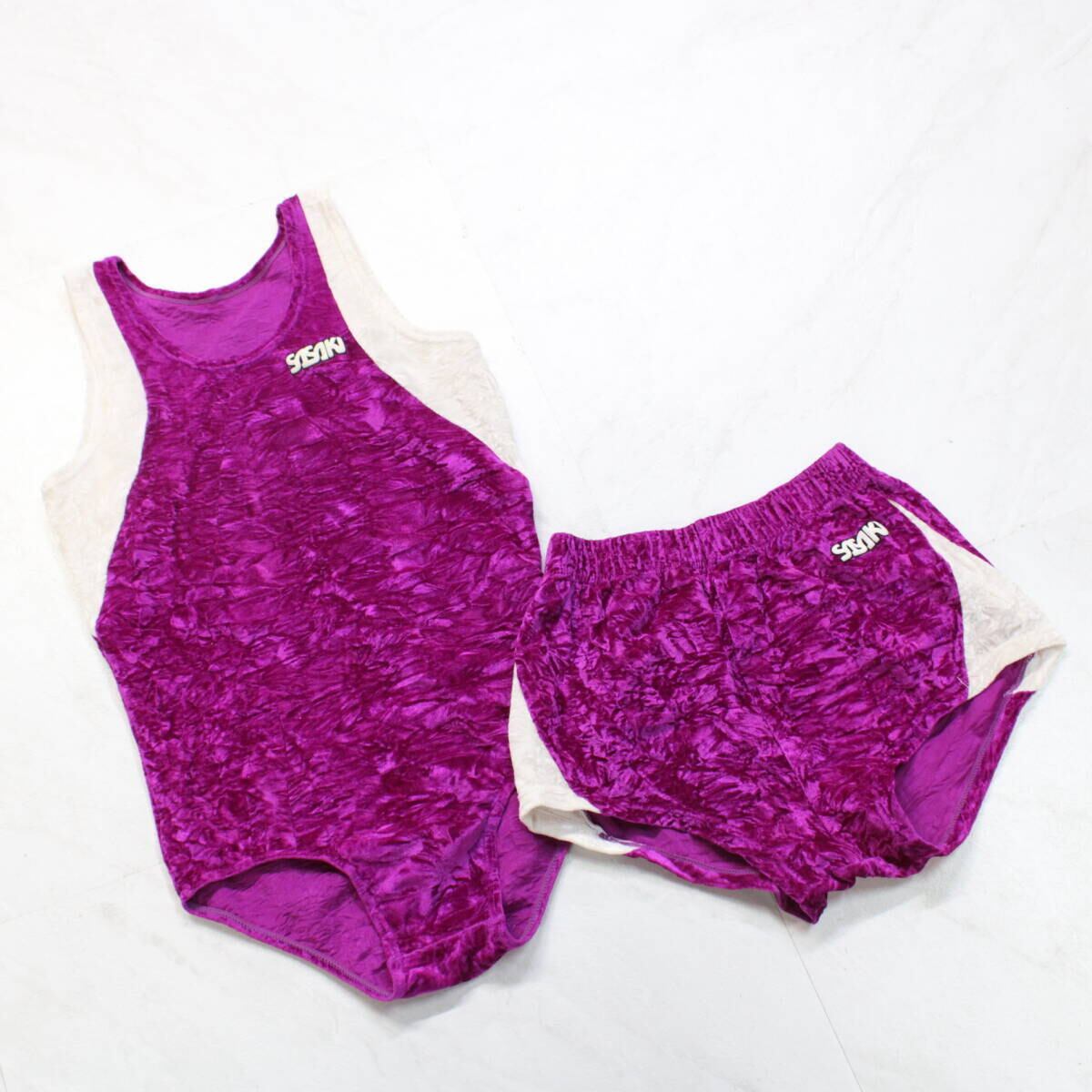 【日本製 新体操衣装】パープル SASAKI ササキ レオタード ショートパンツ ピンク ベロア 紫 練習 器械体操 ダンス 体操 白