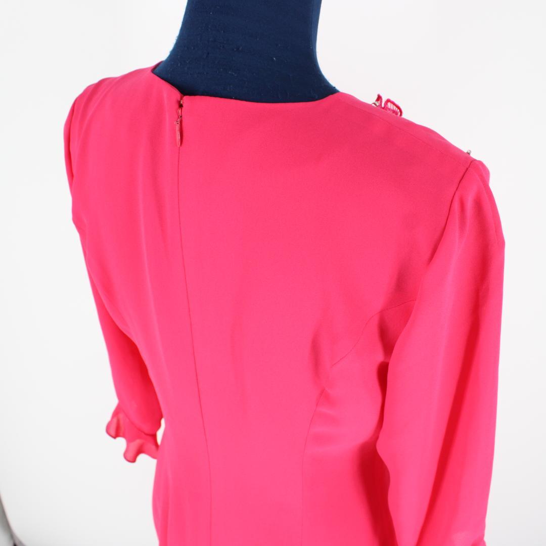【美品 社交ダンス衣装】ワンピース ドレス Mサイズ マゼンダ ピンク 花飾り かわいい 可愛い シンプル フェミニン 上品 清楚
