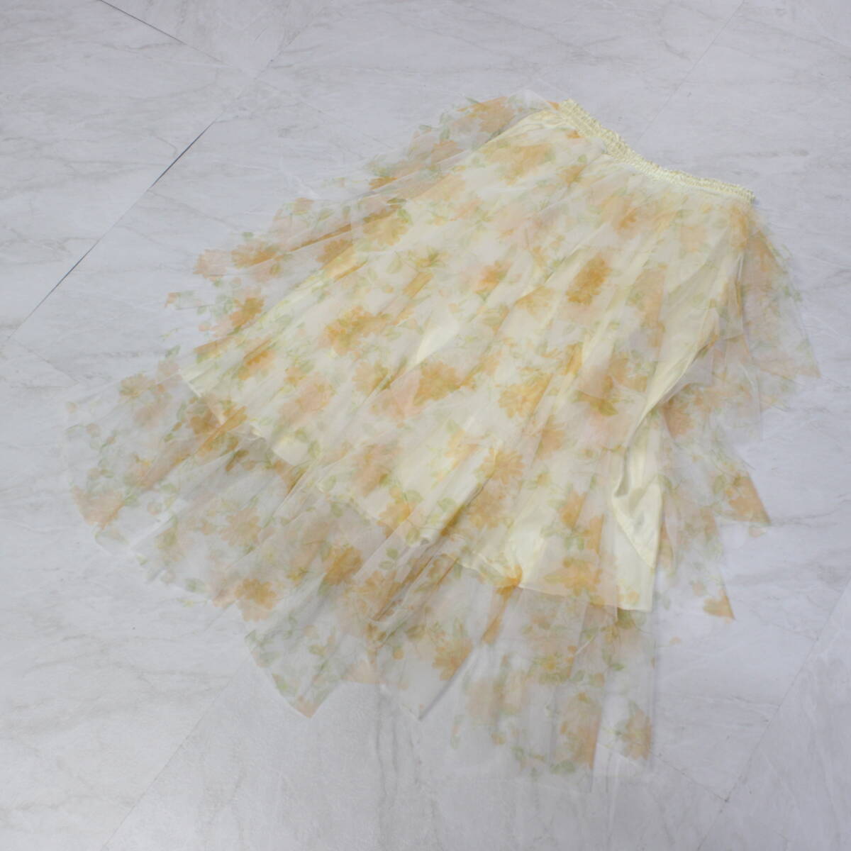 【美品 社交ダンス衣装】スカート レッスンウェア 練習着 ICHIOKU イチオク オレンジ イエロー 黄色 黄緑 ライトグリーン 花柄