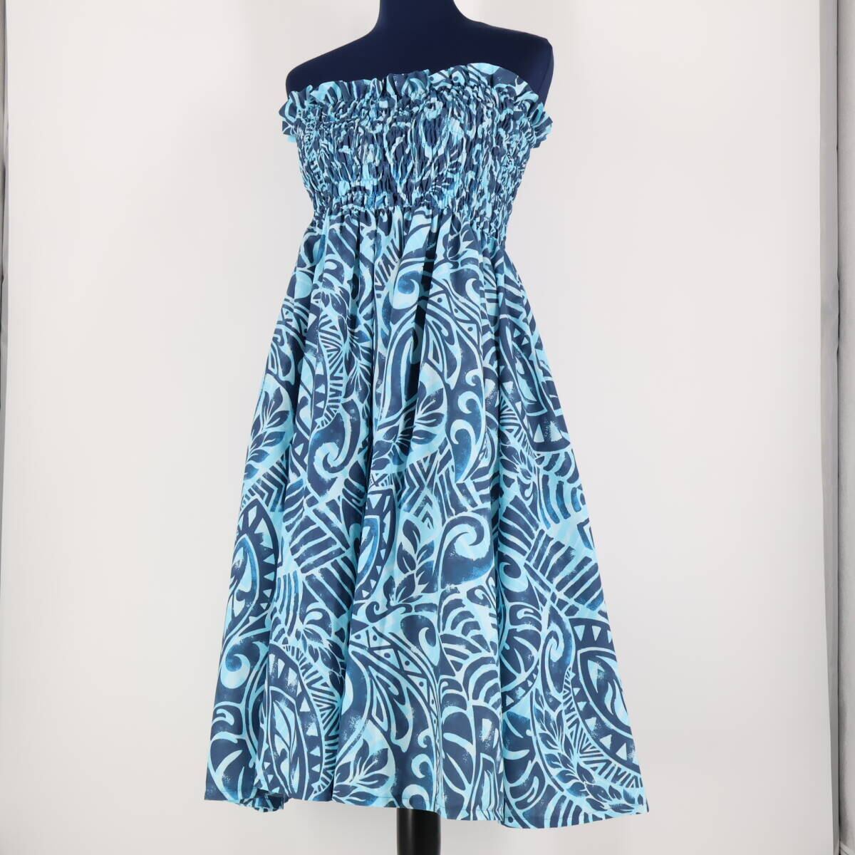 【美品 日本製 フラダンス衣装】ブルー EKOLU EHIKU エコルエヒク ワンピース ドレス 水色 青 紺 チューブトップ かわいい