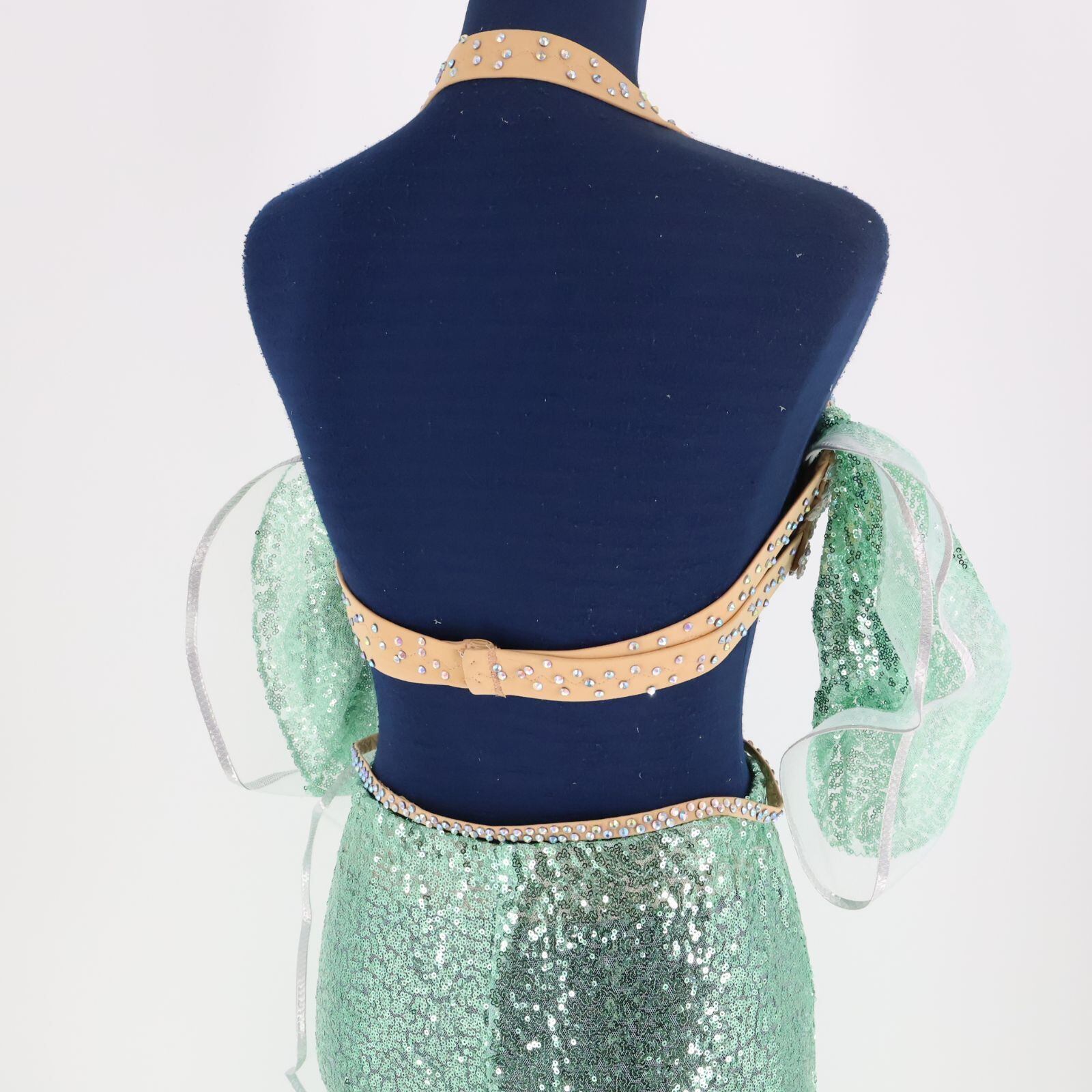 【ベリーダンス用 オリエンタル衣装】ライトグリーン スパンコールラメ 豪華 緑 シルバー フリル 光沢 花柄 華やか 綺麗