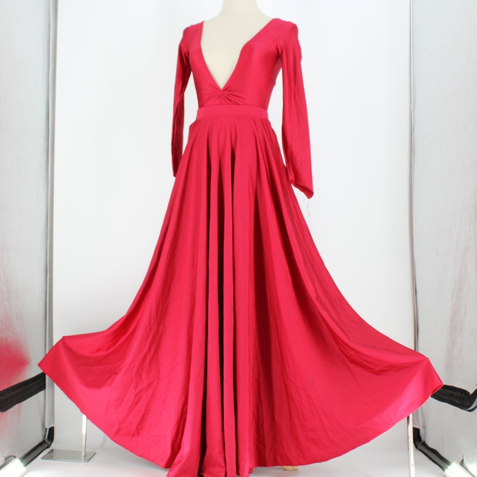 【美品 日本製 社交ダンス衣装】レッド Chacott チャコット 上下セット ダンス用 レオタード スカート 無地 赤 伸縮 舞台 劇