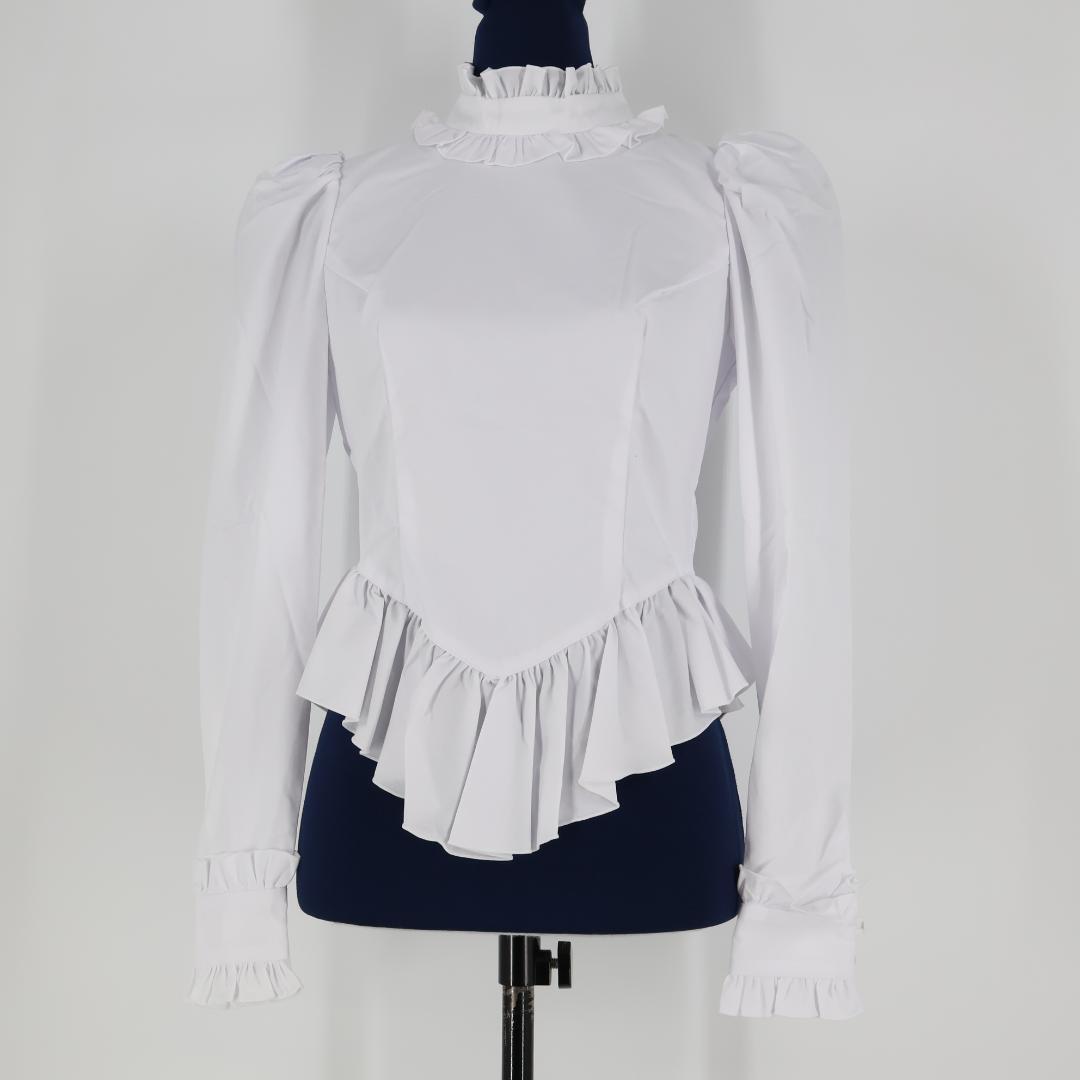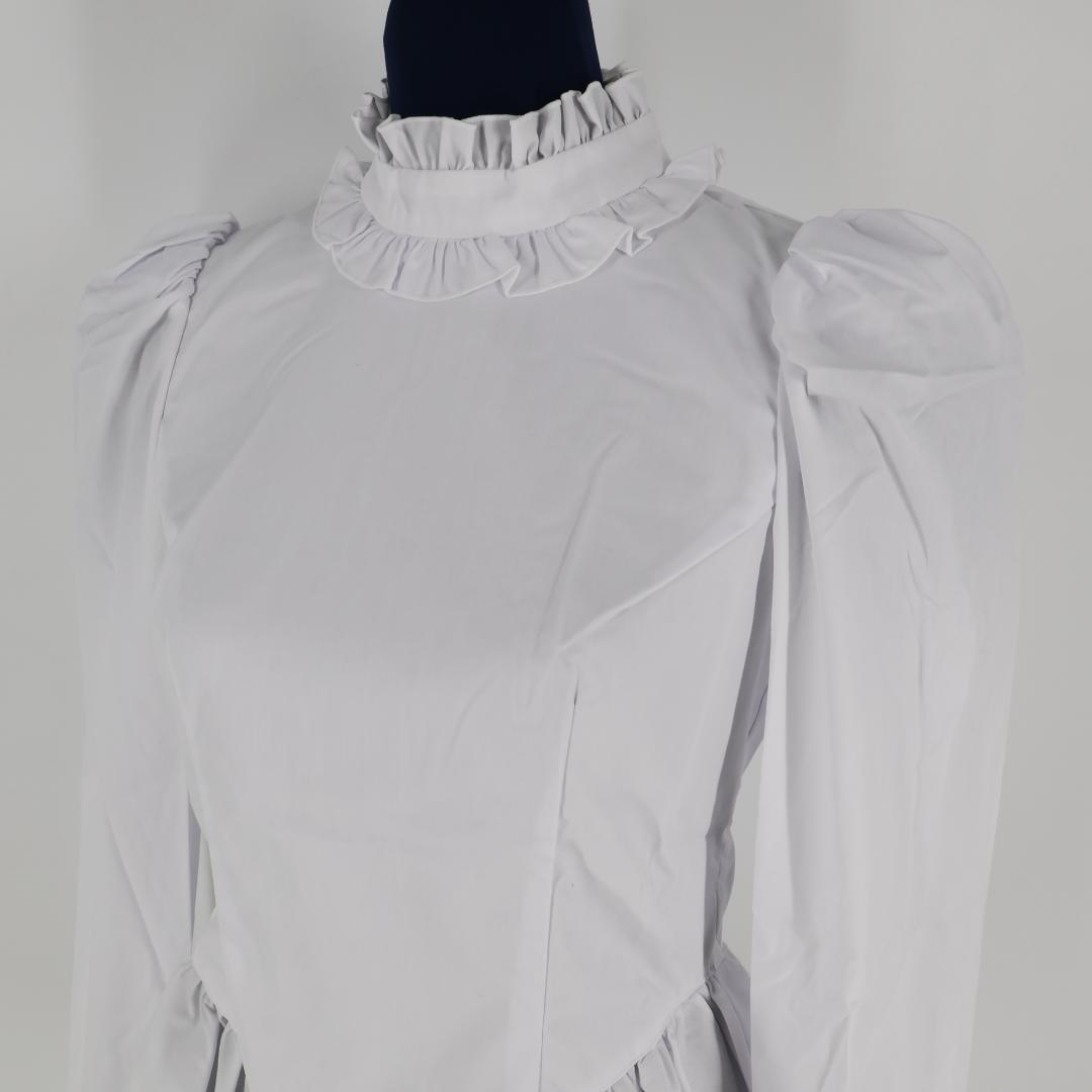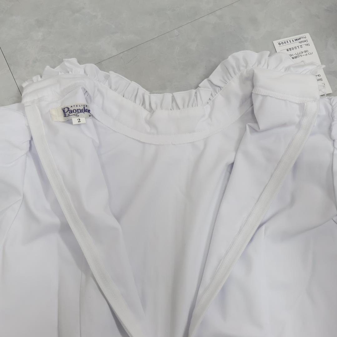 【日本製 フラダンス衣装】ホワイト Paondor パンドール トップス ブラウス 無地 シンプル フリル 白 長袖 アロハ かわいい ②