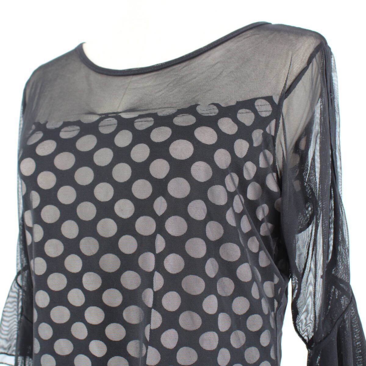 【社交ダンス衣装】ブラック トップス カットソー 黒 フリル レース 水玉 ドット 白 ホワイト 伸縮 発表会 パーティ レッスン