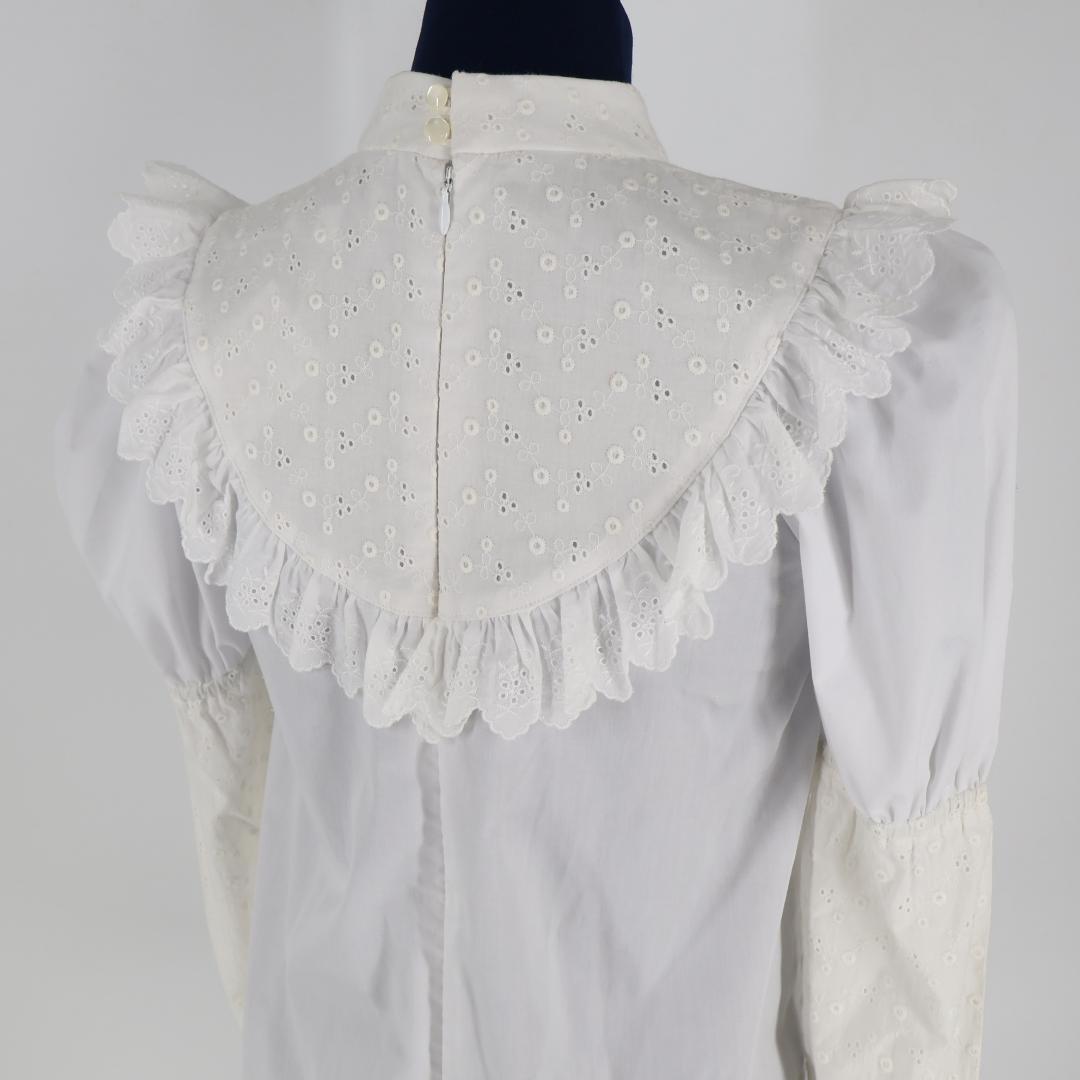 【日本製 フラダンス衣装】ホワイト Paondor パンドール トップス ブラウス 白 刺繍 フリル 長袖 シンプル アロハ かわいい ①