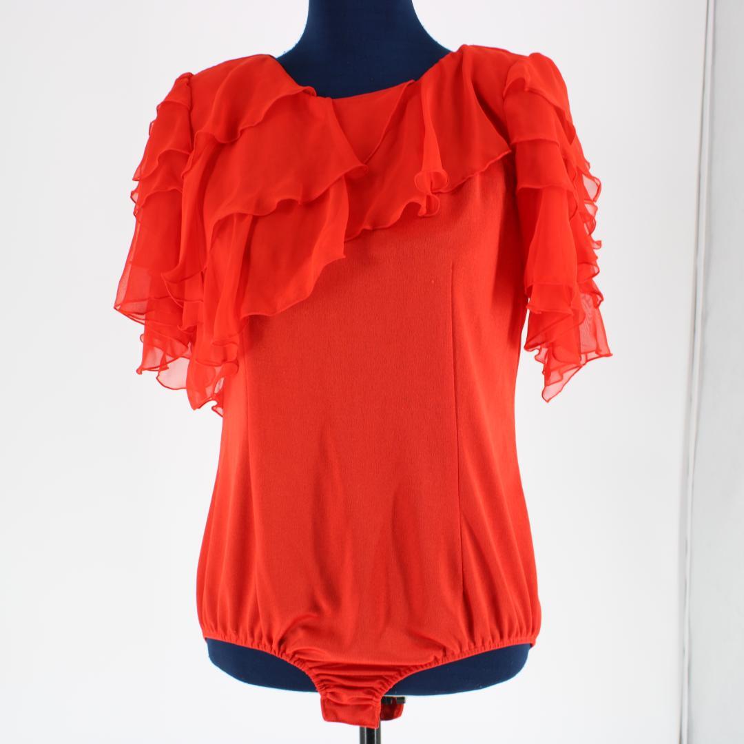 【美品 日本製社交ダンス衣装】トップス レッスンウェア 練習着 レオタード SEKINE セキネ 9号 赤 レッド 無地 シンプル 派手