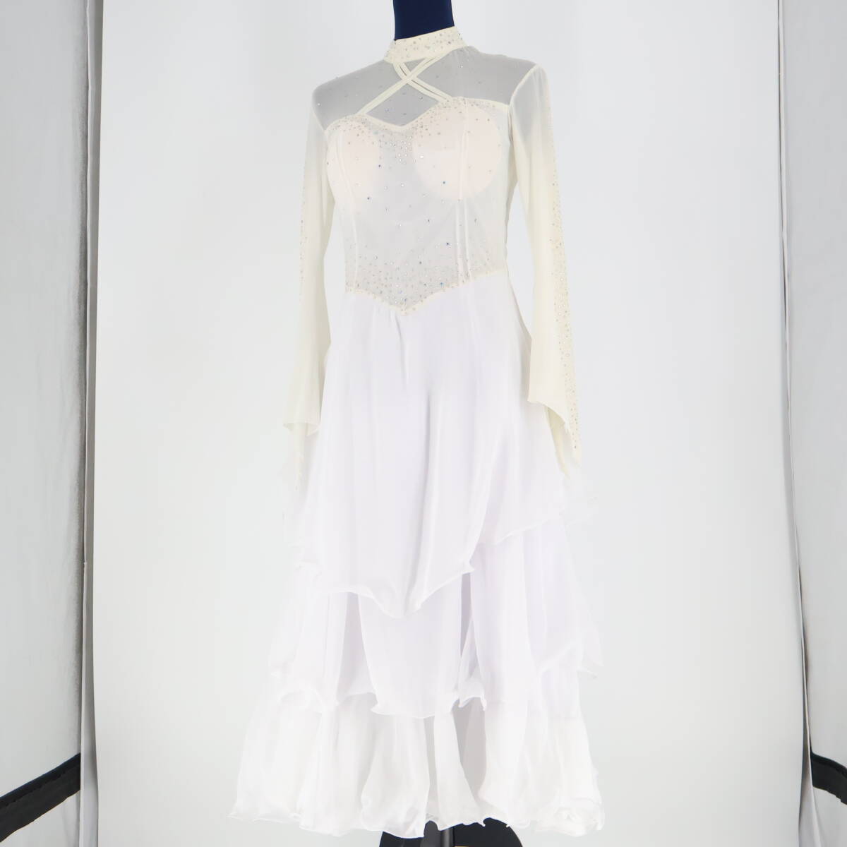 【社交ダンス衣装】ホワイト prima boutique プリマブティック ワンピース ドレス 白 フリル レース 綺麗 パーティ 発表会