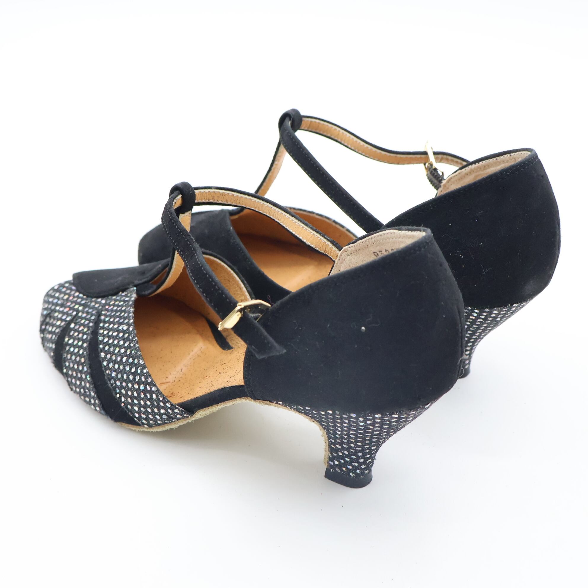 【日本製 社交ダンス用衣装】21 1/2CM Papillon ブラック ラメ ダンス シューズ レディース用 黒 ヒール 女性用 スウェード 社交ダンス ラメ靴 スタイリッシュ オシャレ 日本製 黒スウェード ダンス練習