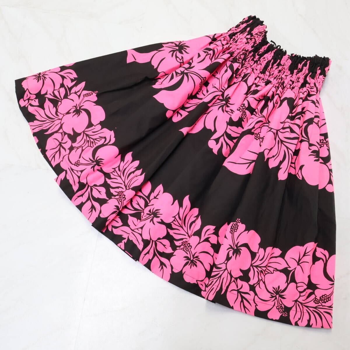 【フラダンス衣装】ブラック Pink Lei パウスカート ピンク 黒 ハイビスカス柄 花柄 鮮やか 華やか ハワイアン アロハ 可愛い