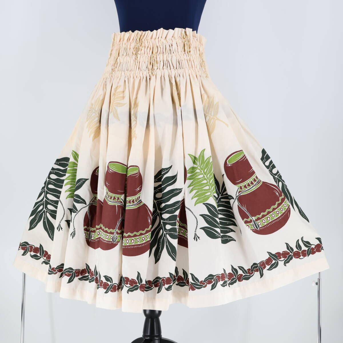 【フラダンス衣装】ホワイト ALOHA FABRICS パウスカート 白 イプ 茶 緑 ブラウン グリーン 爽やか ハワイアン アロハ 可愛い