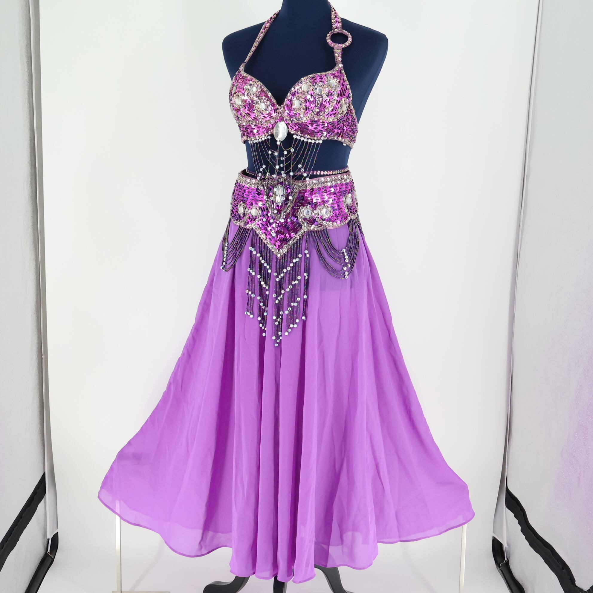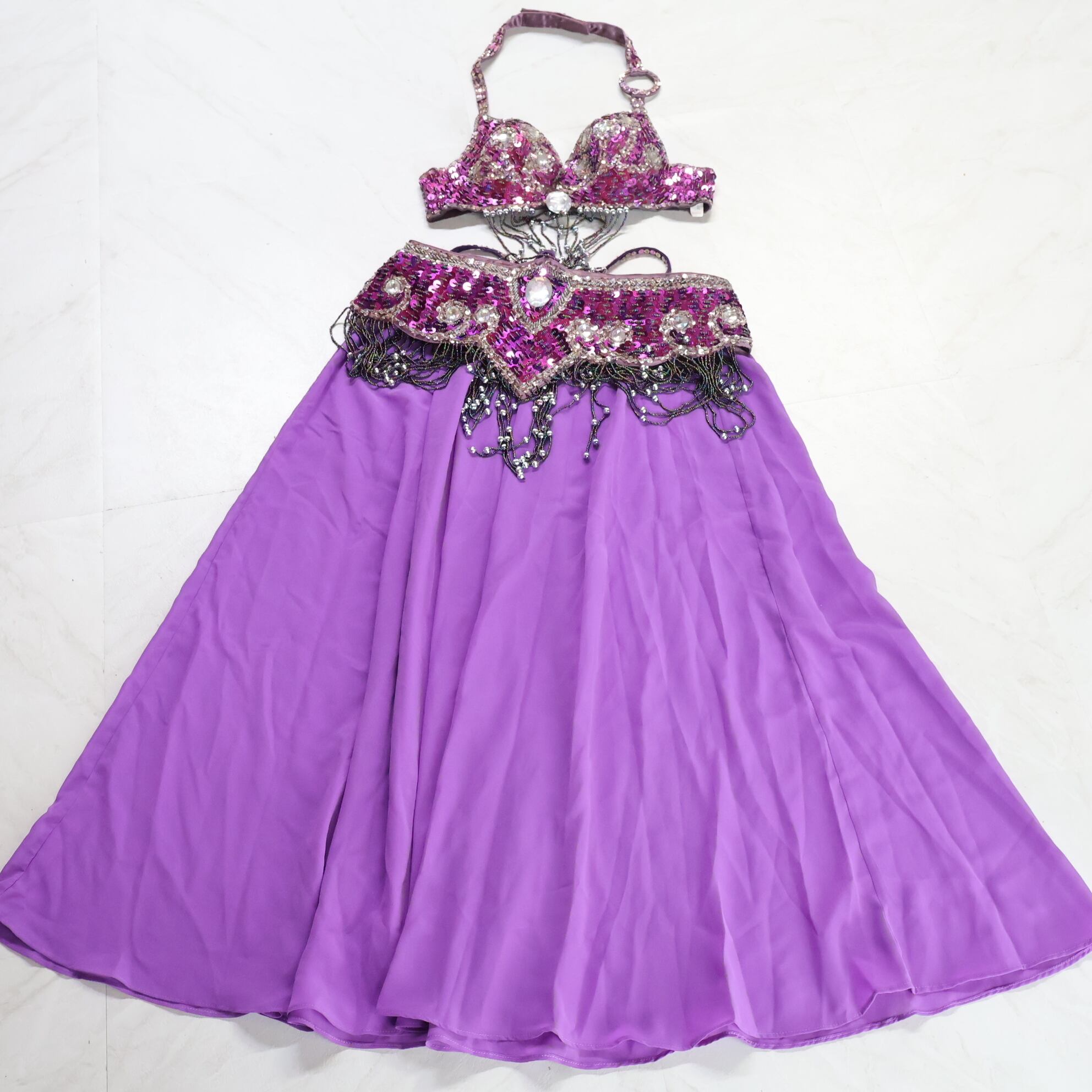 #ベリーダンス #オリエンタル衣装 #ダンス衣装 #パープル #ラメ #豪華 #スパンコール #ビーズ #衣装セット #鮮やか #トップス #スカート #ウエストゴム #マジックテープ #伸縮性 #スリット無し #ファッション #パフォーマンス #舞台衣装 #ENUTSU