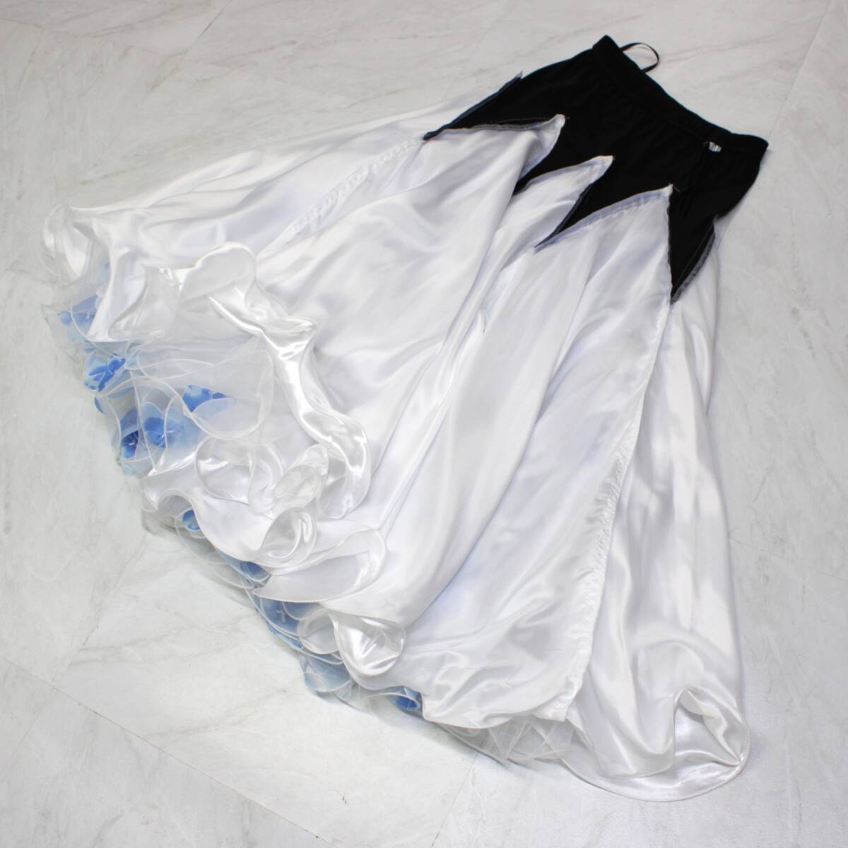【美品 社交ダンス衣装】スカート レッスンウェア 練習着 黒 白 水色 青 ブラック ホワイト ライトブルー ブルー 花柄 清楚