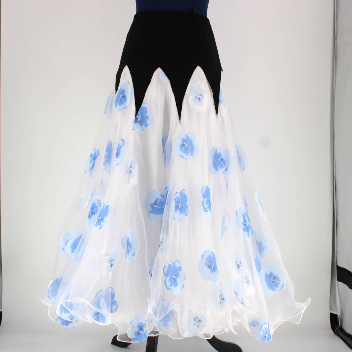 #社交ダンス #ダンス衣装 #スカート #花柄 #ボリュームスカート #ウエストゴム #パーティー #舞踏会 #ファッション #ダンススタイル #エレガント #かわいい #コーディネート #セクシー #ライトブルー #ブルー #ホワイト #ブラック #ダンスイベント #ENUTSU