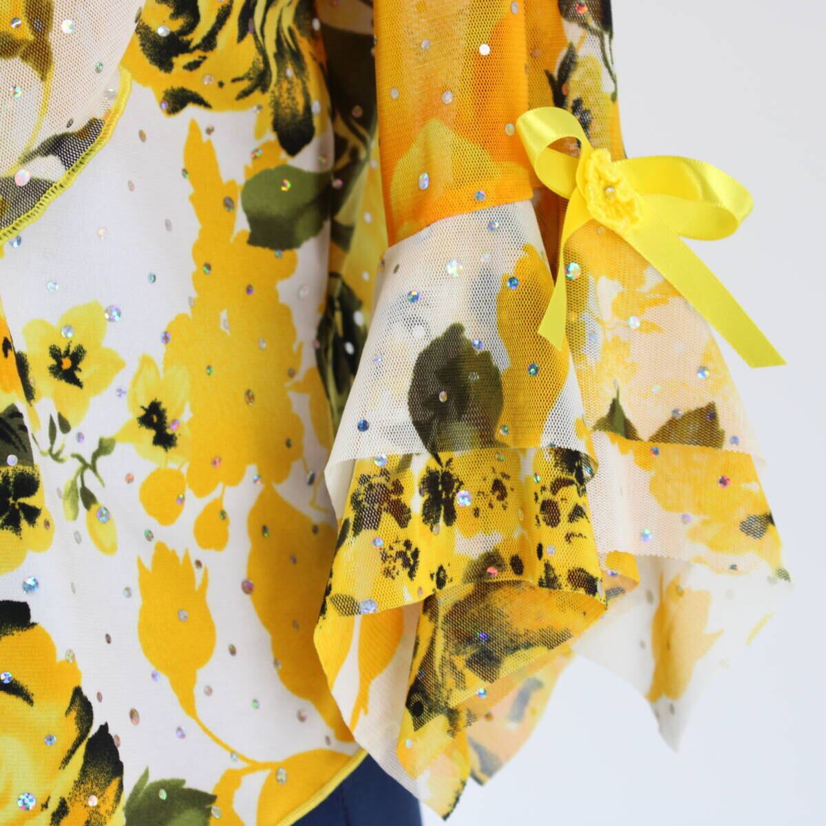 #社交ダンス #ダンス衣装 #トップス #レインボー #花柄 #おしゃれ #ラインストーン #ダンスファッション #スポーツウェア #イベント衣装 #伸縮性 #大人可愛い #ゴージャス #カラフル #イエロー #ブラック #グリーン #肩パッド #ウエスト #ENUTSU