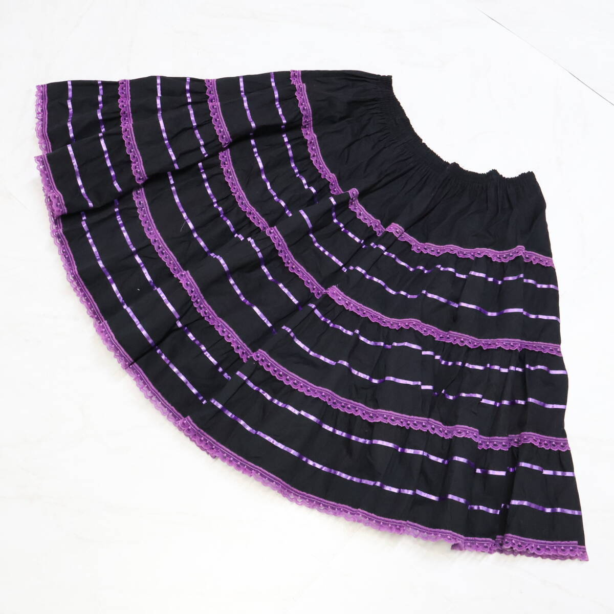 【フォークダンス衣装】ブラック スカート 紫 黒 パープル レース きらきら 華やか 鮮やか カントリー リボン かわいい 可愛い